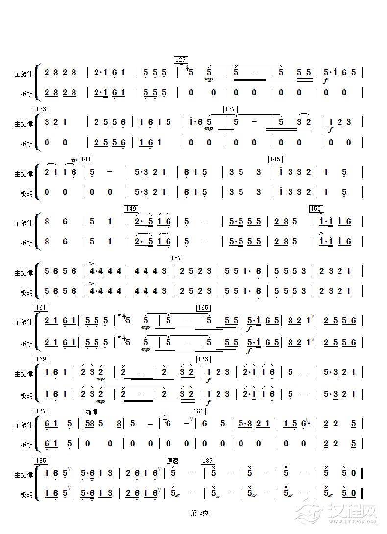 京调(板胡与主旋合成谱)