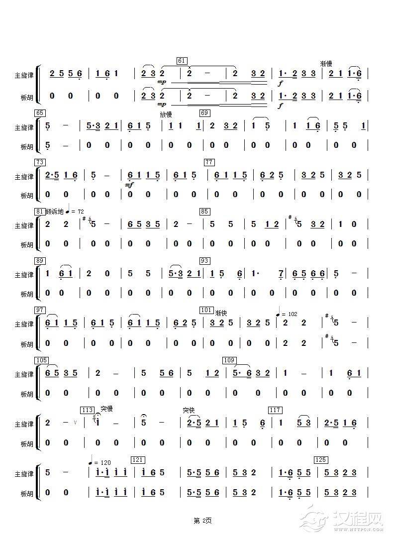 《新疆舞曲》高胡2-6弦分谱2