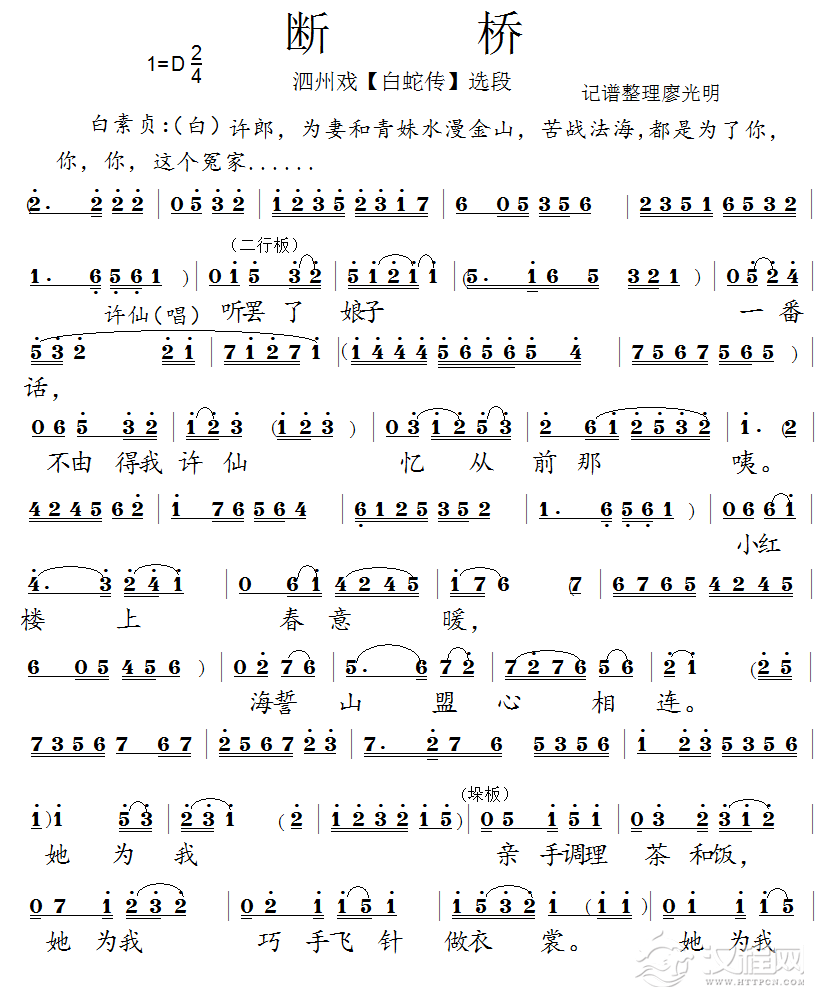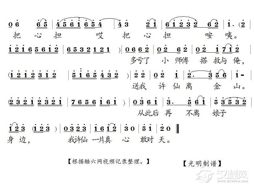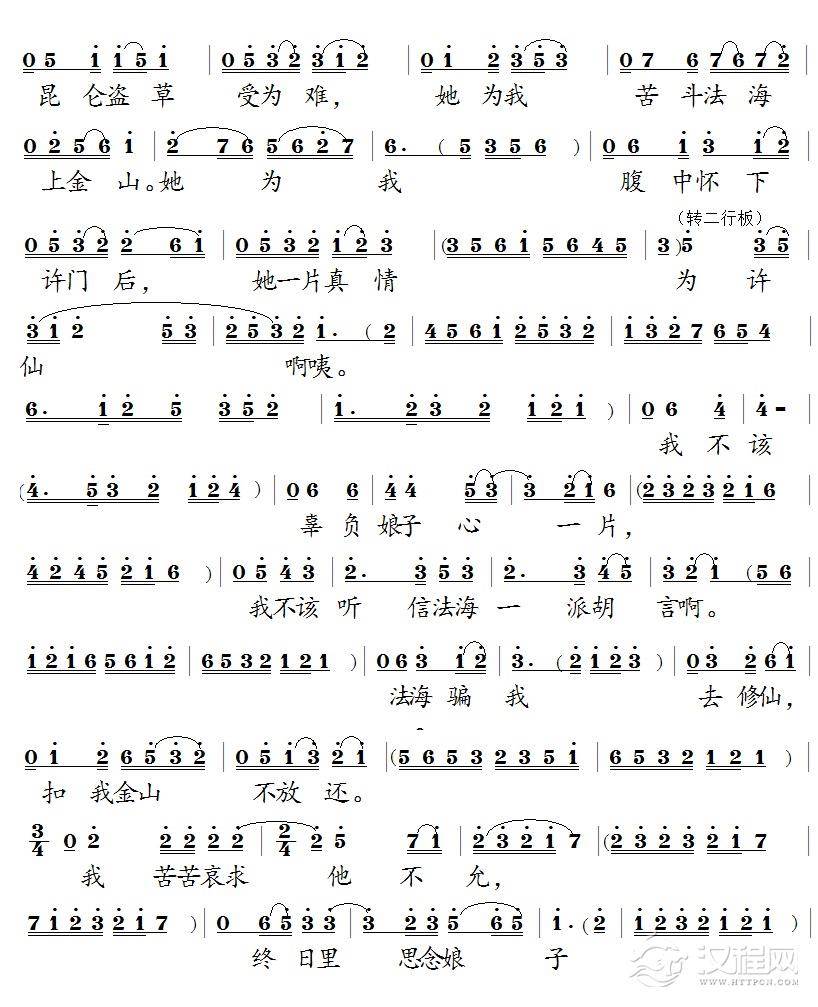 戏曲曲谱莫再守(黄梅戏《榴花不开盼哥回》选段)