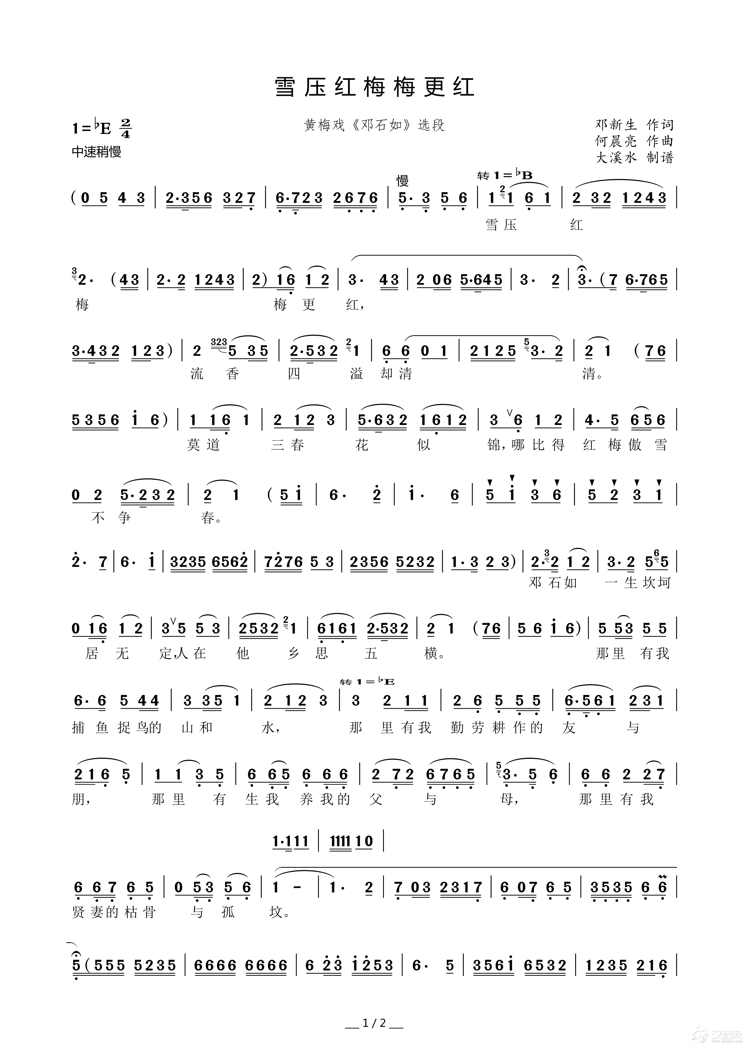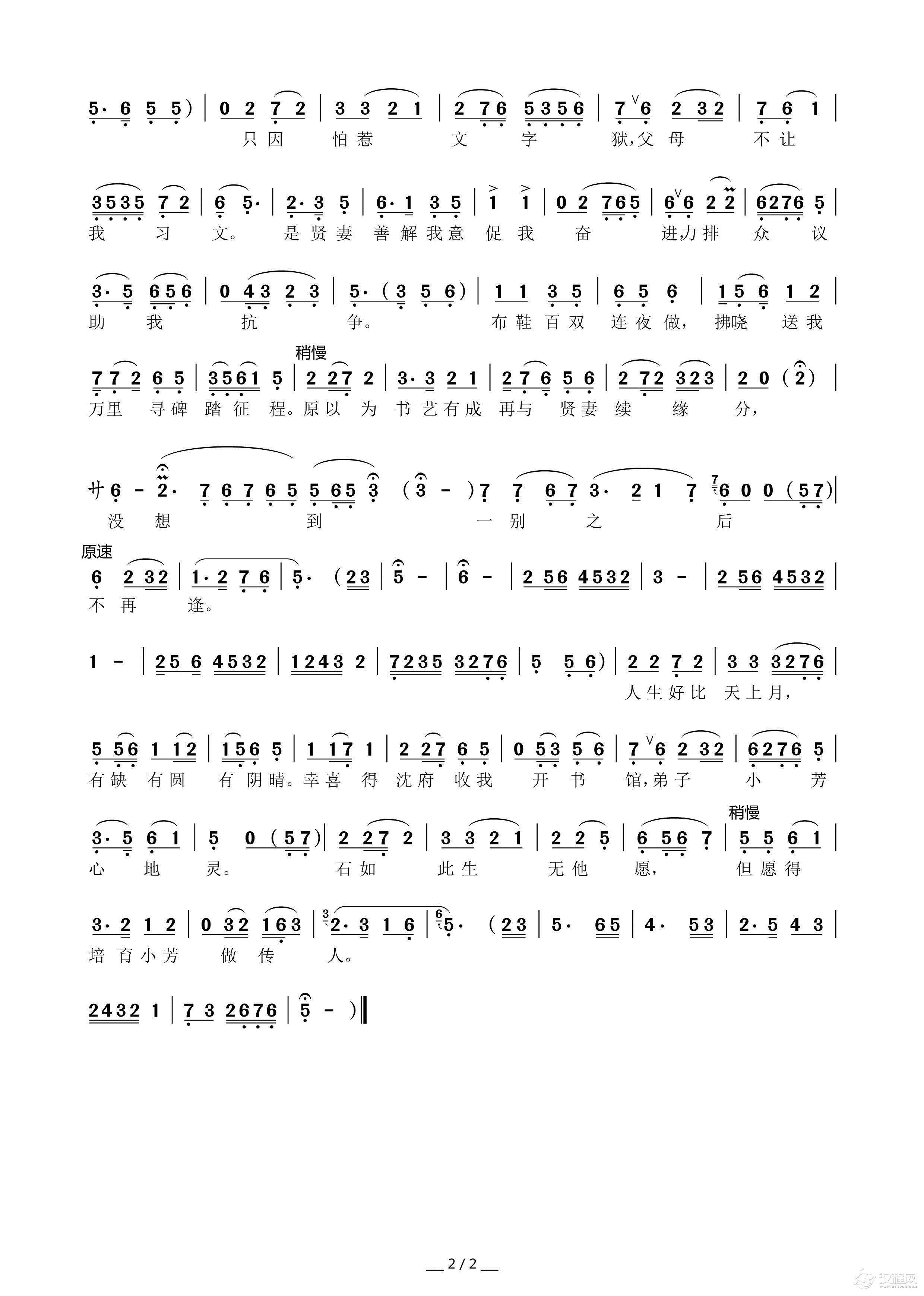 戏曲曲谱莫再守(黄梅戏《榴花不开盼哥回》选段)