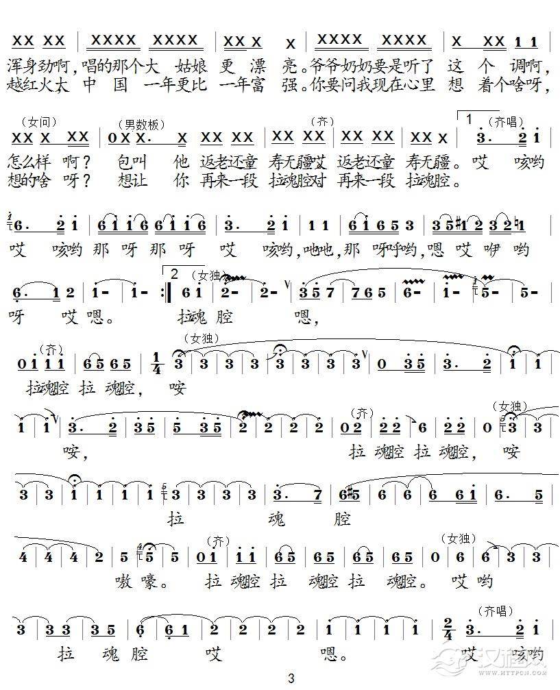 戏曲曲谱傻子歌(《四季常青》选段)