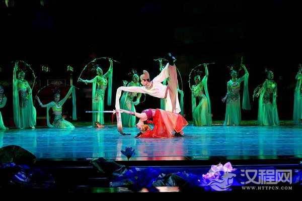 一尊龙首吐出琼浆玉液,碧波荡漾;贵妃身上玉液流涟,闭花羞月。龙首缓缓旋转,明皇出现在池边,似胶似漆的爱情双人舞,让人沉醉在浓浓的刻骨铭心的爱情之中,为这对千古佳人感叹不已。