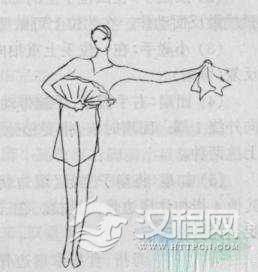 团扇:右手握扇、手腕带动手指将扇子朝里(对身体)向下向外绕1周。团扇时手腕、手指要松弛。