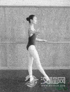 ④先教双手扶把一位往旁、往前、往后擦地。后教双手扶把五位往旁、往前、往后擦地(过渡到单手扶把做)。(此文摘自上海音乐出版社出版的《中国古典舞基本功训练教材与教法》)