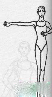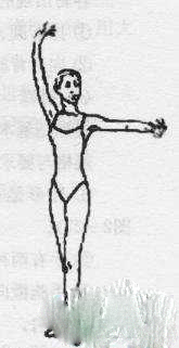规格与要求同单山膀,双手平抬于身体两旁,高度与肩平,开度与胸平。