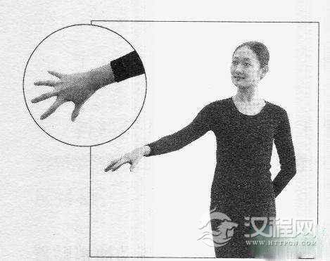 准备:手臂自然垂于身体一侧,袖梢向旁展开。