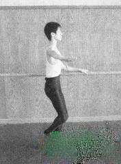 王力腿伸直同时动力腿往前伸出点地或45°。主力腿半蹲、动力腿绷脚屈膝放到主力腿踝骨上面,主力腿伸直同时动力腿往旁伸出点地或45°。主力腿绷脚屈膝放到主力腿小腿肚子下面。主力腿伸直,动力腿同时往后伸出点地或45°。