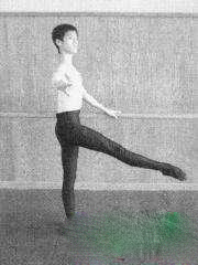 3.主力腿半蹲承担身体重心支撑要收腹提胯立后背,动力腿伸出绷脚直膝,整条腿外开。