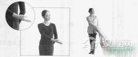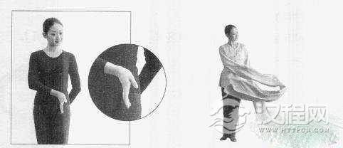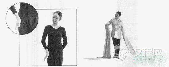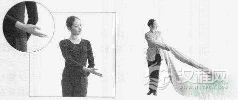 准备:手臂垂于身体一侧,袖梢展开。