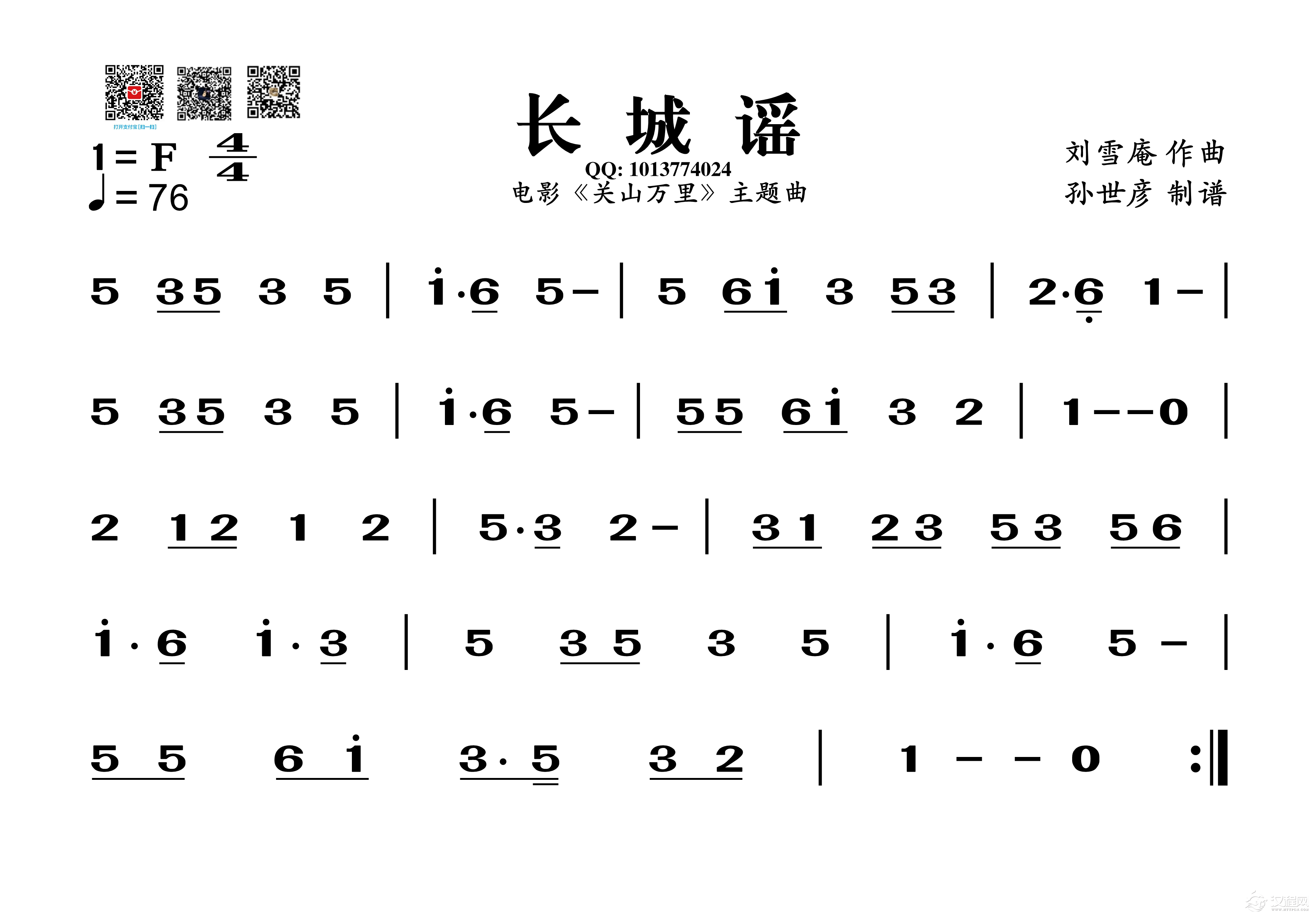 曲谱大全英雄赞歌(葫芦丝旋律谱)