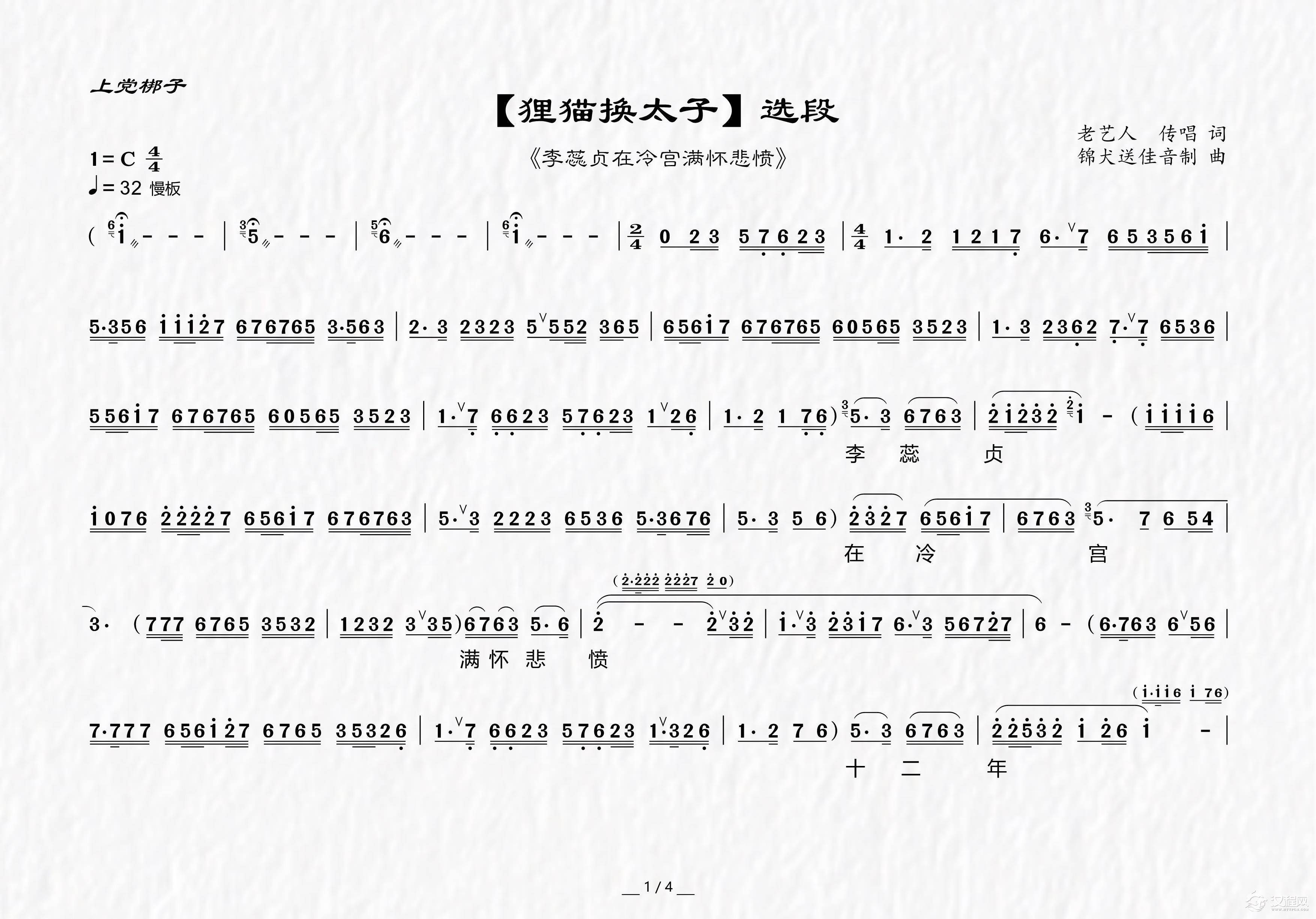 戏曲曲谱谯楼打罢了二更鼓响(《渭水河》选段、琴谱、恒流星制谱版)