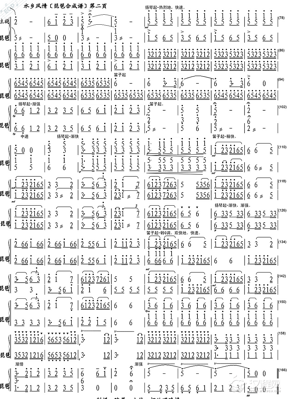 曲谱大全麦收时节(琵琶分谱)