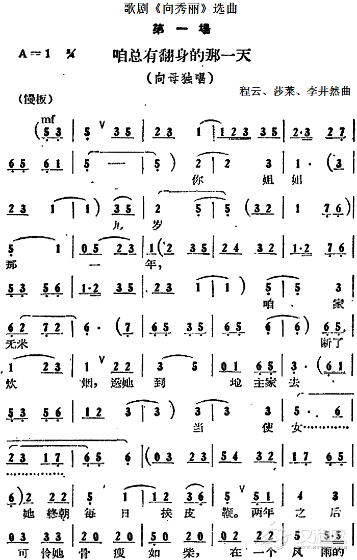 戏曲曲谱歌剧《向秀丽》选曲:第六场 朗朗的青天(向秀丽独唱)