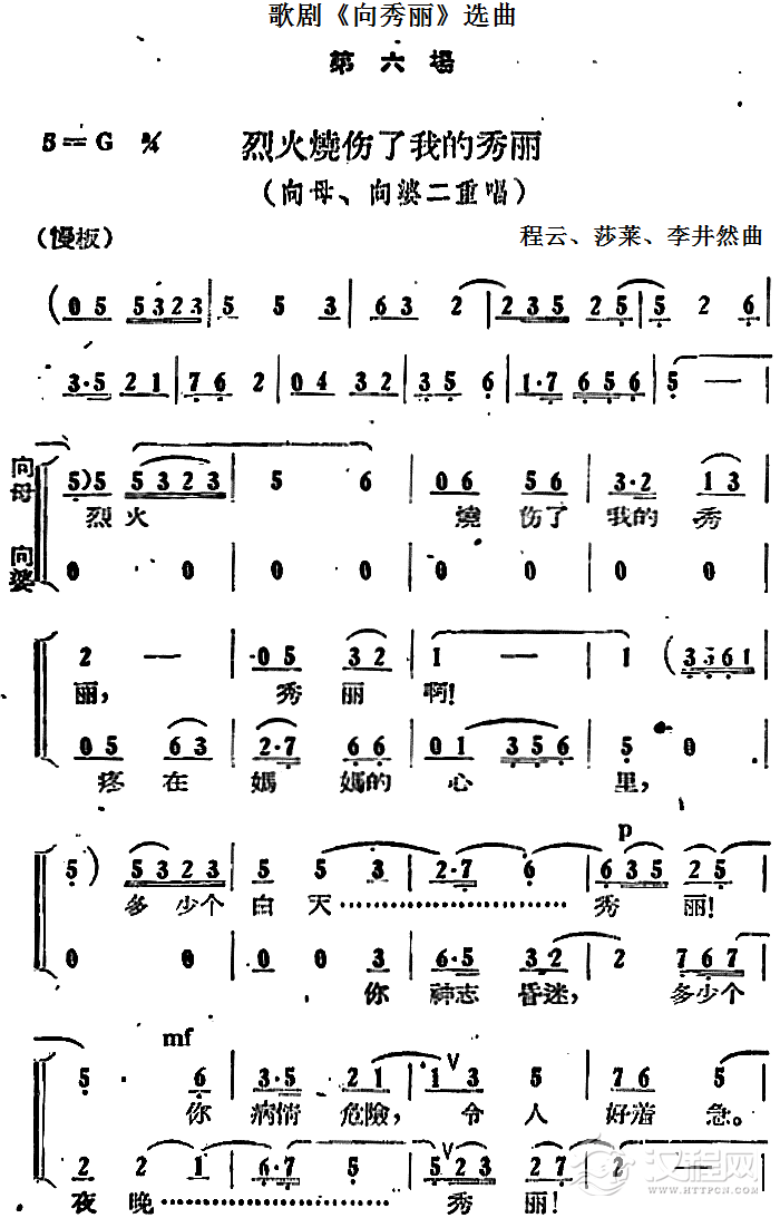 戏曲曲谱歌剧《向秀丽》选曲:第六场 莫悲伤,别哭泣(向秀丽独唱)