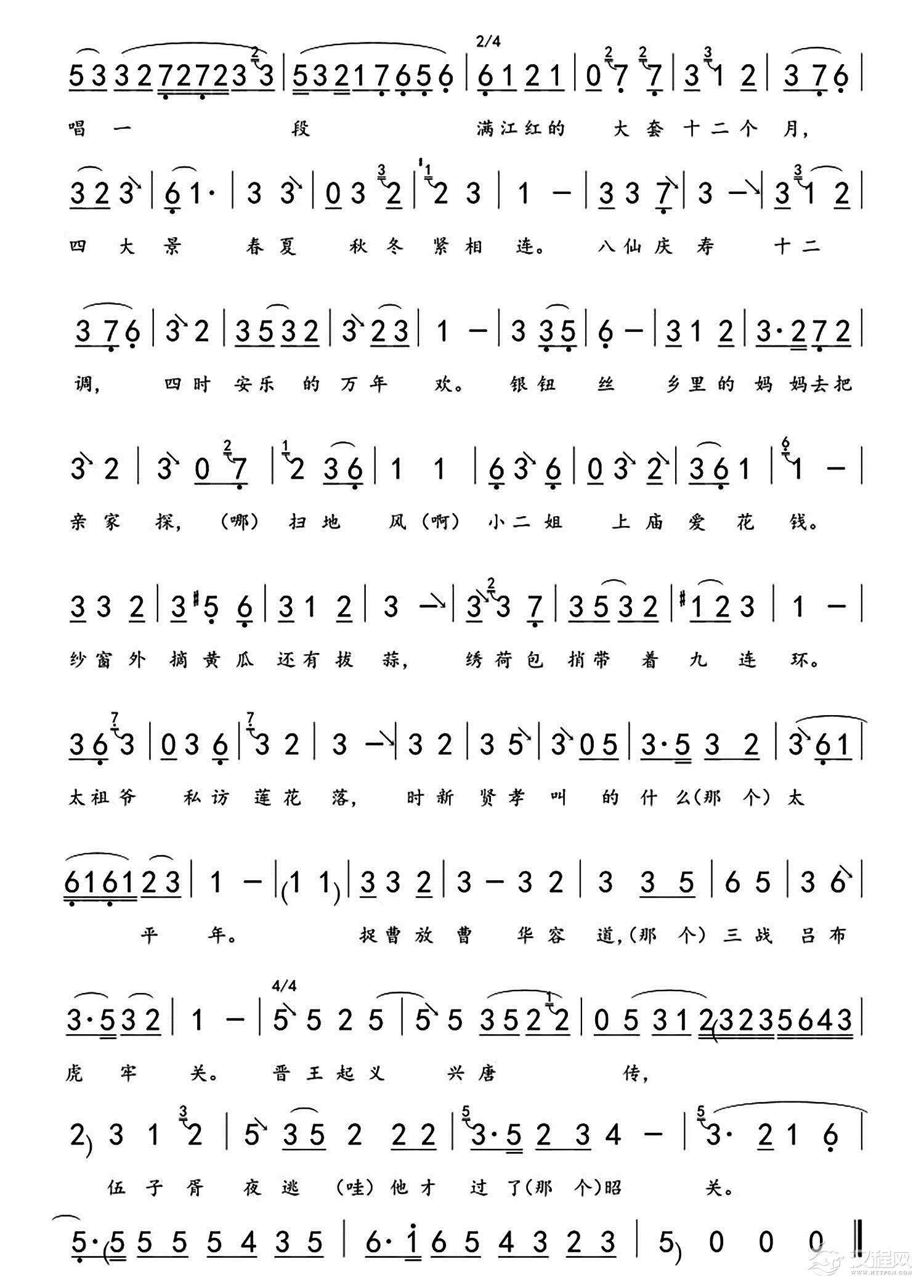 戏曲曲谱[商雒花鼓戏]八岔戏和小调戏曲调:开门调(4首)