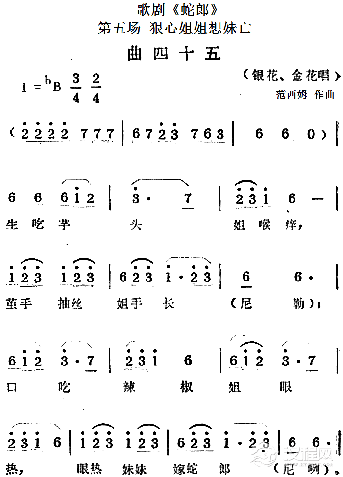 戏曲曲谱歌剧《蛇郎》第五场 狠心姐姐想妹亡:曲四十六(银花、金花唱段)