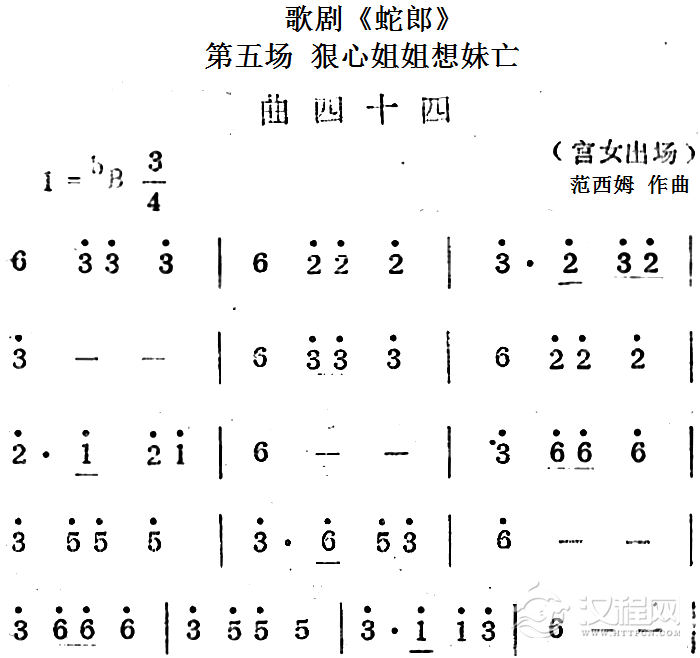 戏曲曲谱歌剧《蛇郎》第七场 鱼目怎能混珍珠:曲五十七(无伴奏)