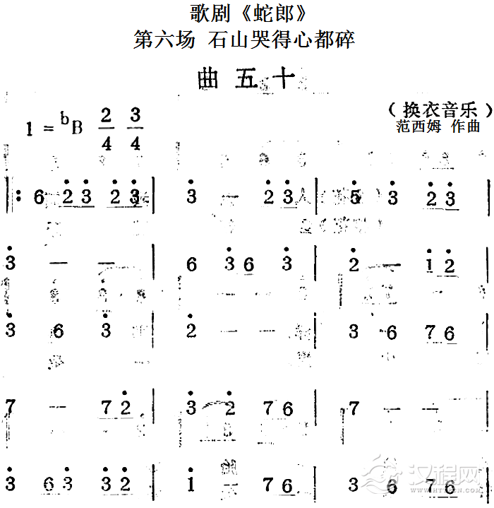 戏曲曲谱歌剧《蛇郎》第六场 石山哭得心都碎:曲四十九(金花、银花唱段)