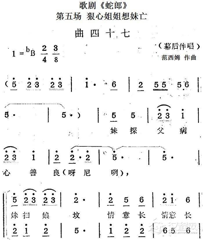 戏曲曲谱歌剧《蛇郎》第五场 狠心姐姐想妹亡:曲四十六(银花、金花唱段)