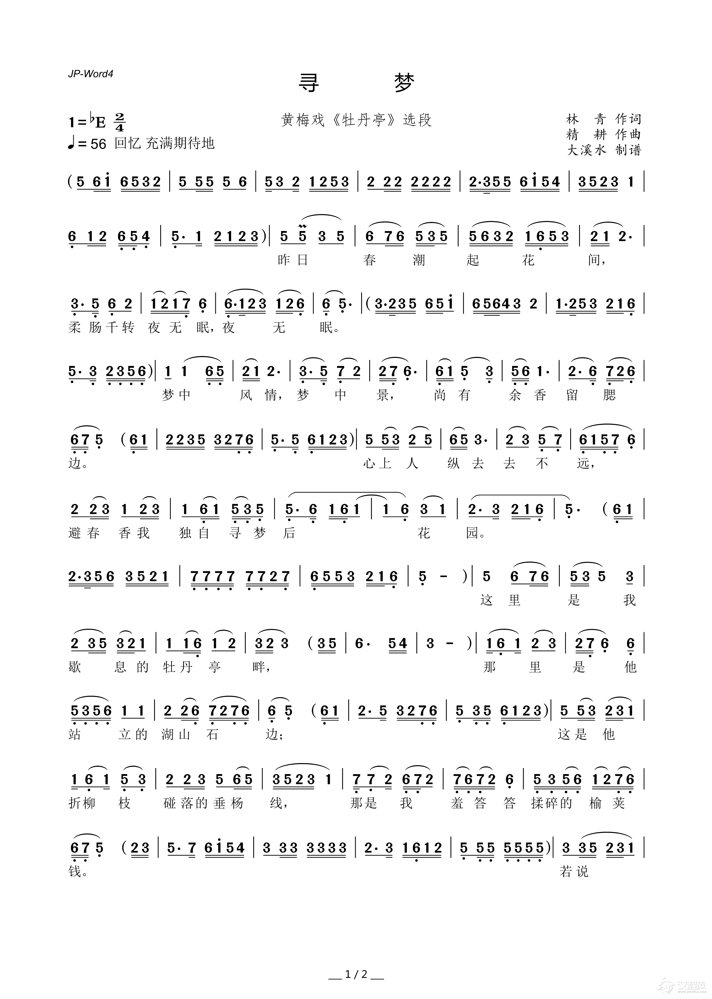 戏曲曲谱盼只盼心上的人儿早日有着落(黄梅戏《拾玉镯》选段)