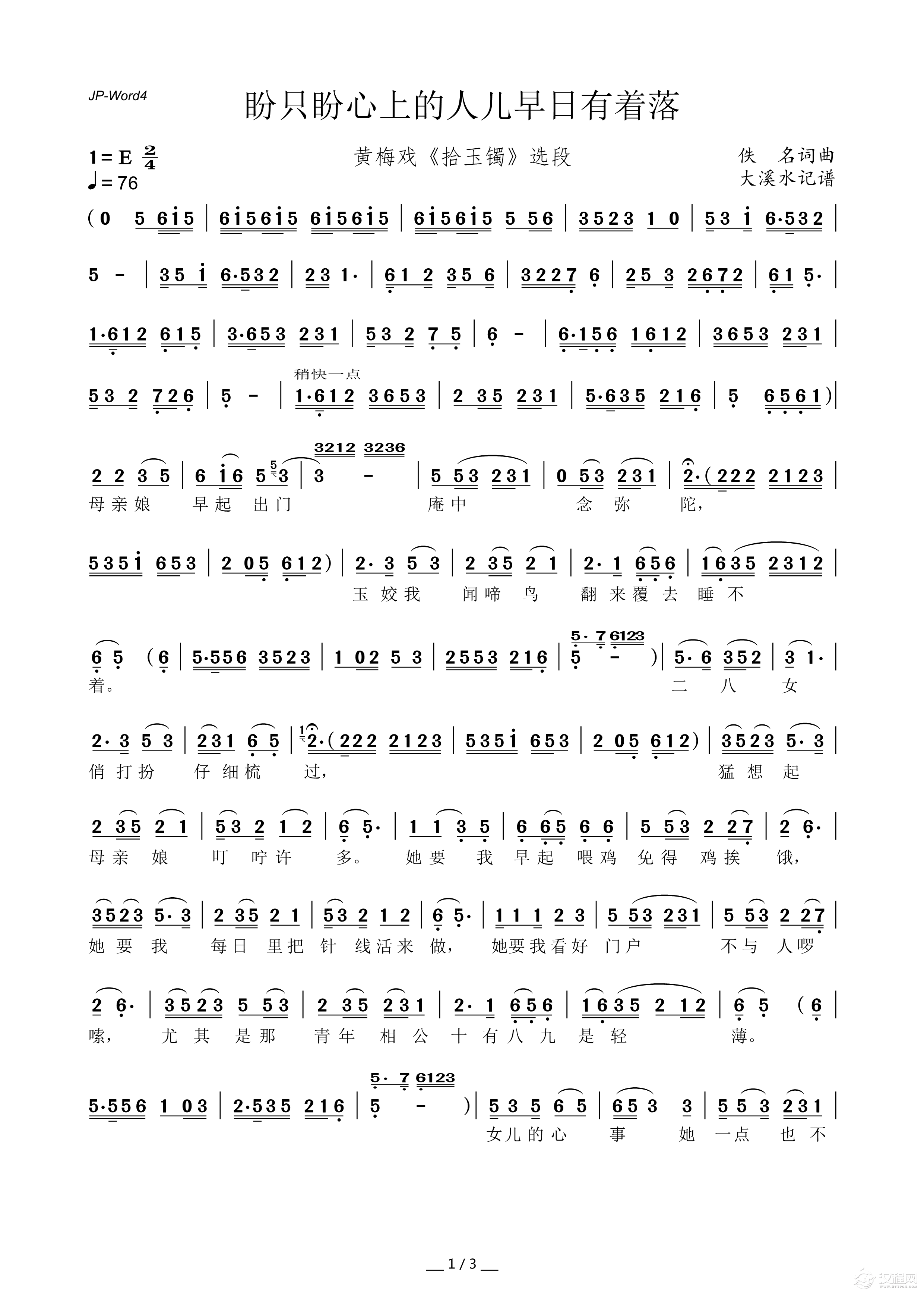戏曲曲谱寻梦(黄梅戏《牡丹亭》选段)