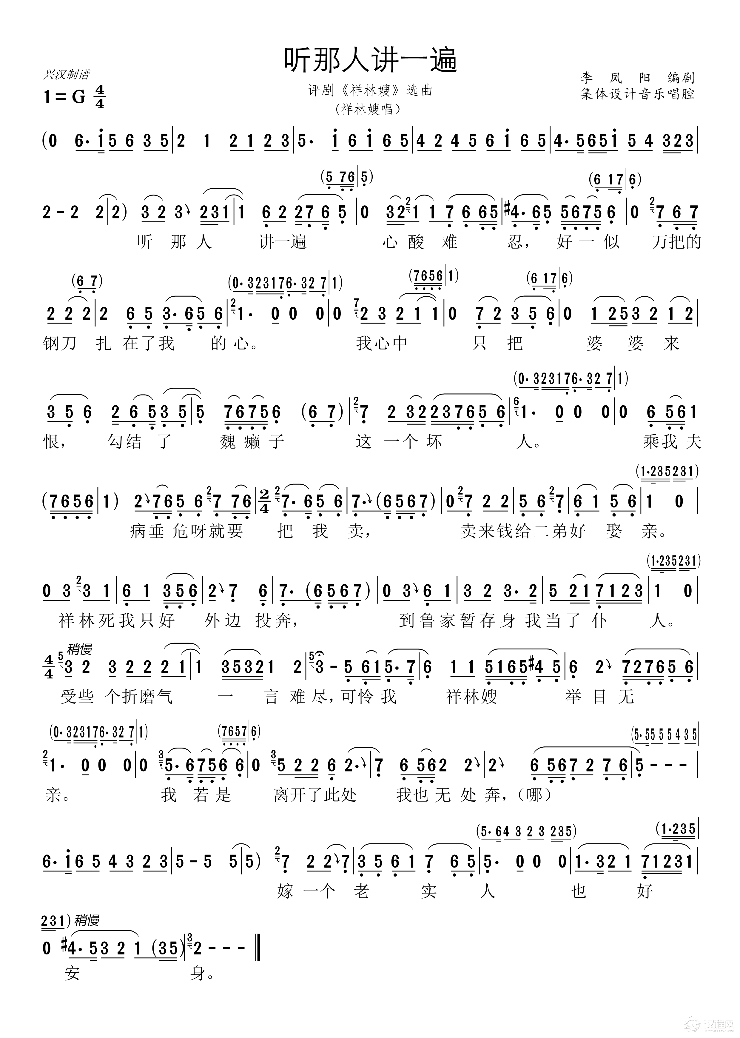戏曲曲谱歌剧《蛇郎》第五场 狠心姐姐想妹亡:曲四十七(幕后伴唱)