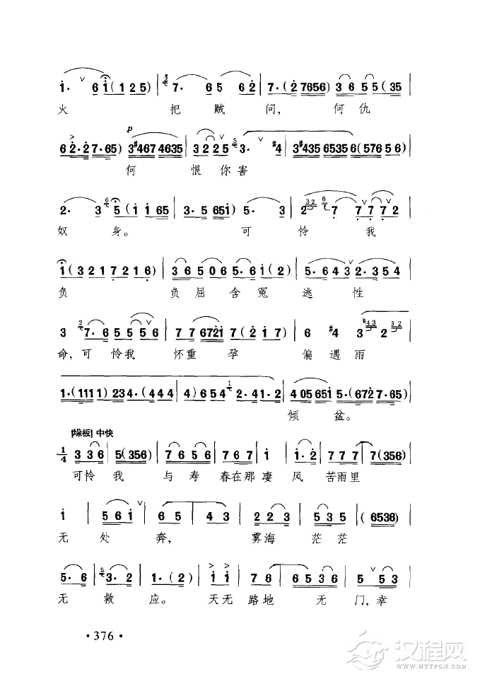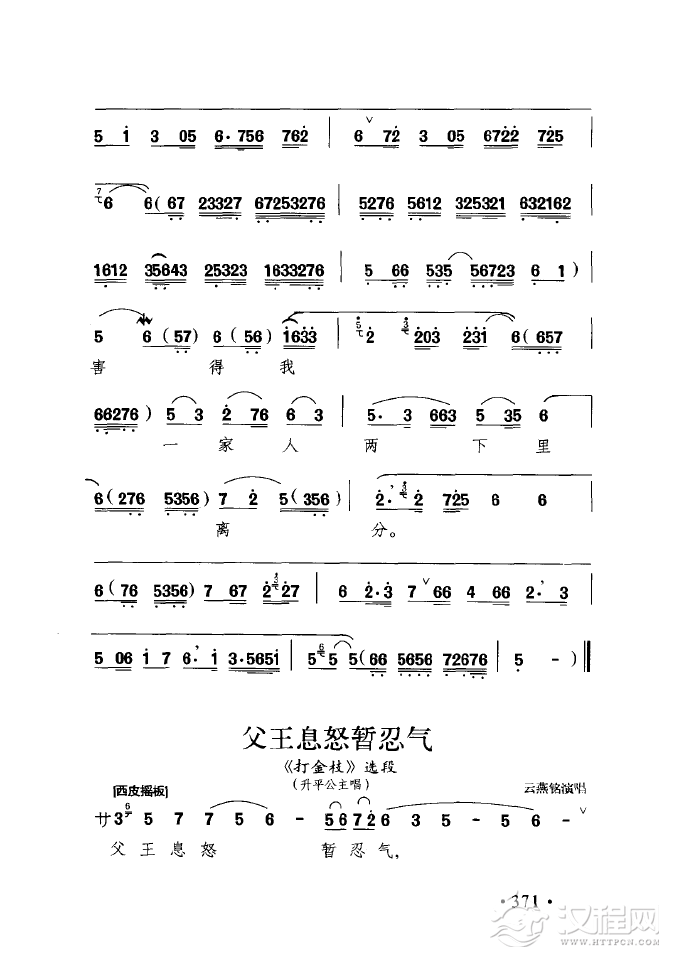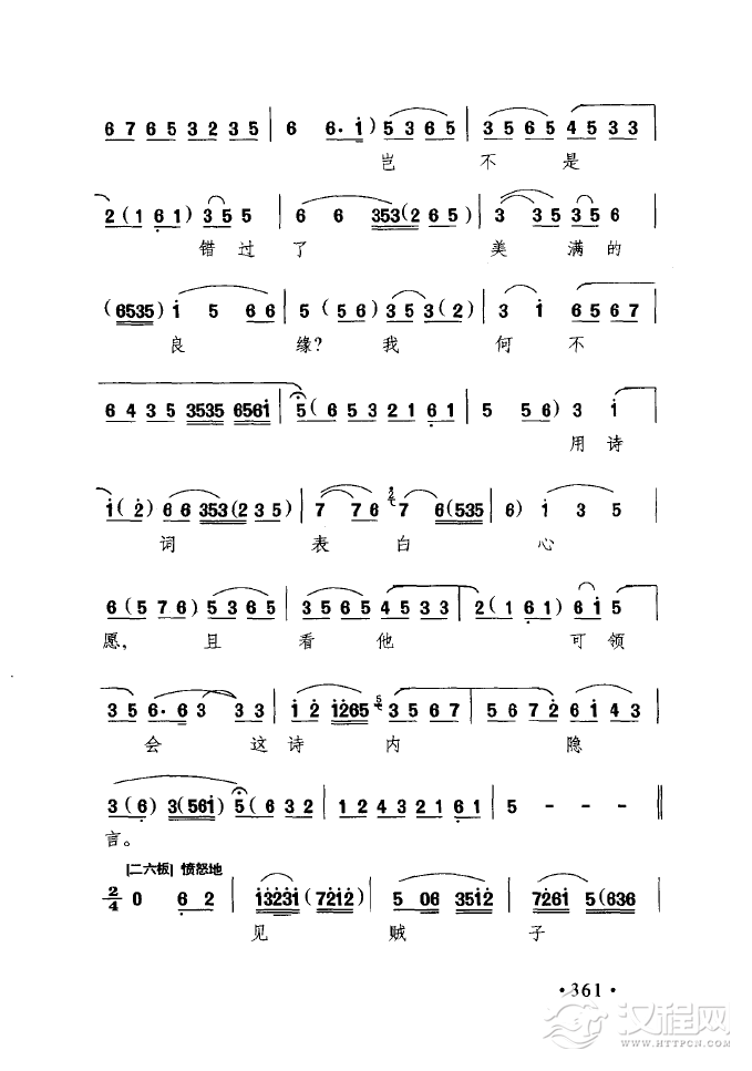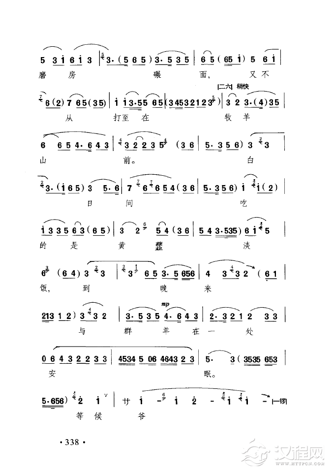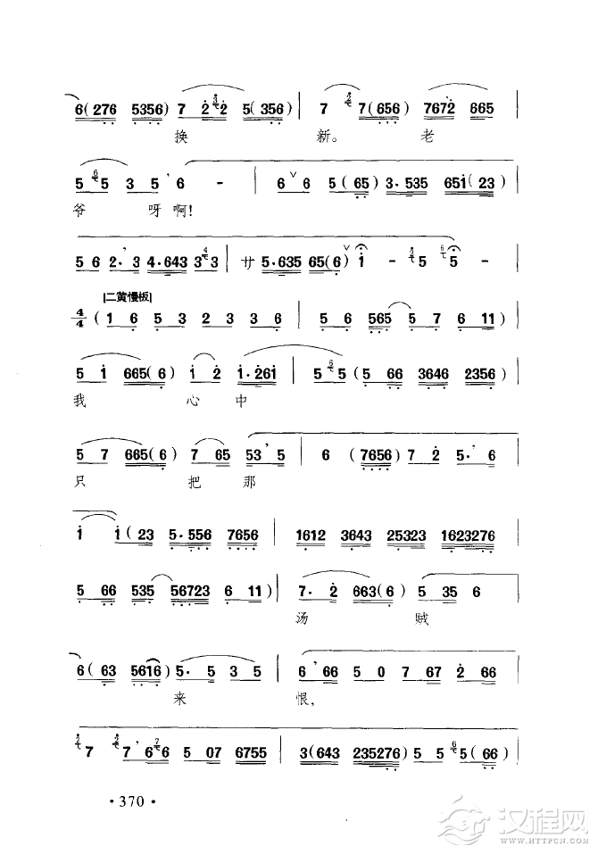 戏曲曲谱盼只盼心上的人儿早日有着落(黄梅戏《拾玉镯》选段)