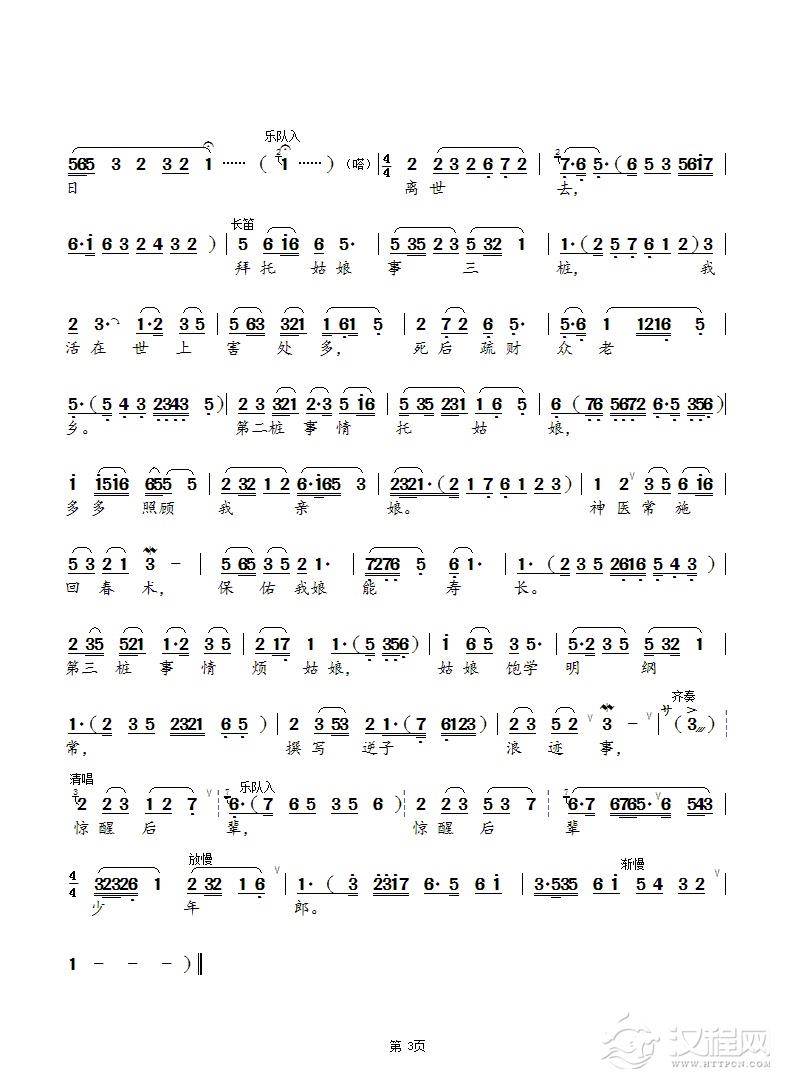 戏曲曲谱听那人讲一遍(评剧《祥林嫂》选曲)