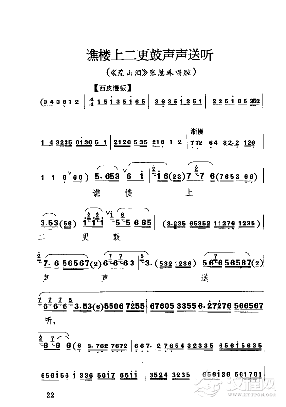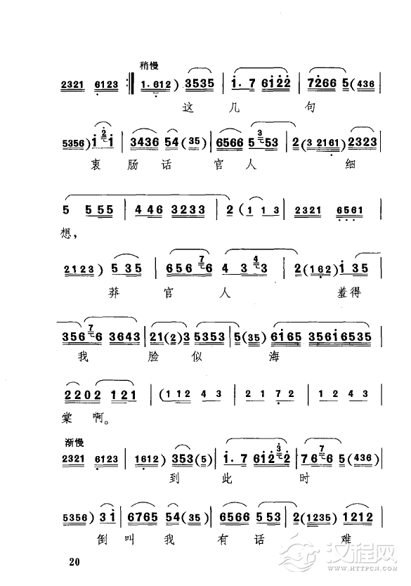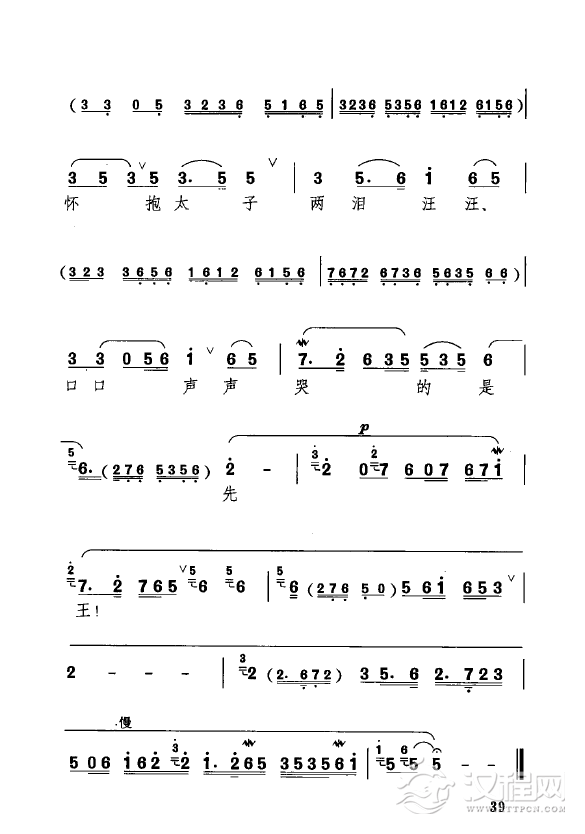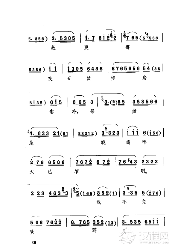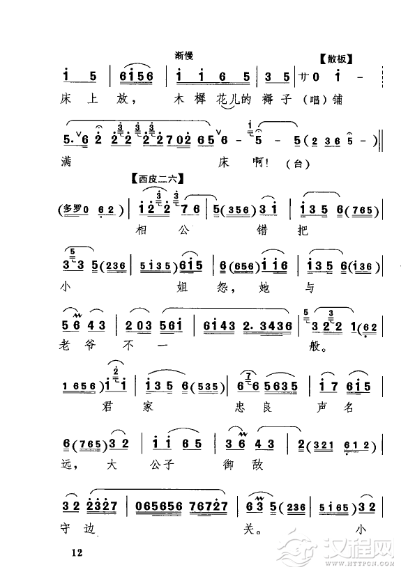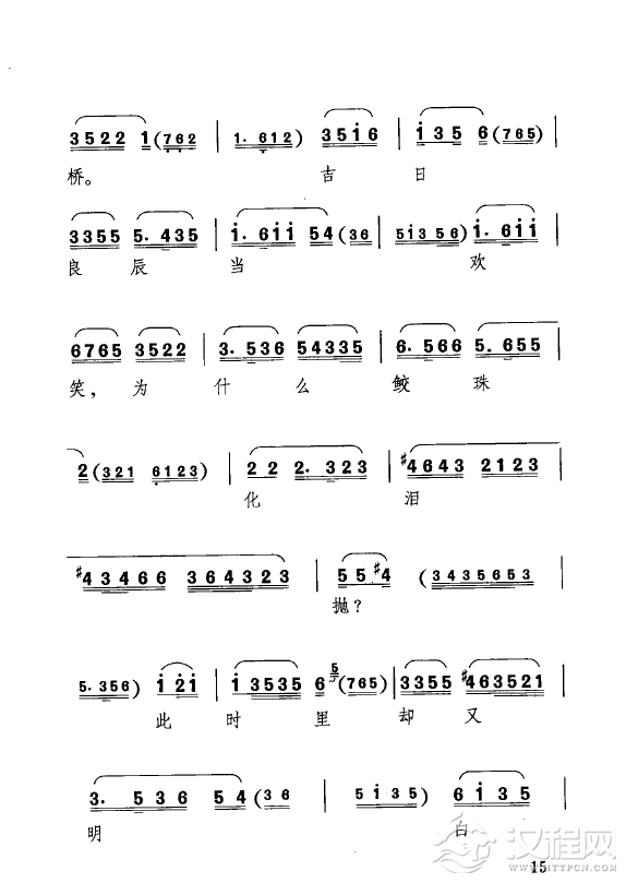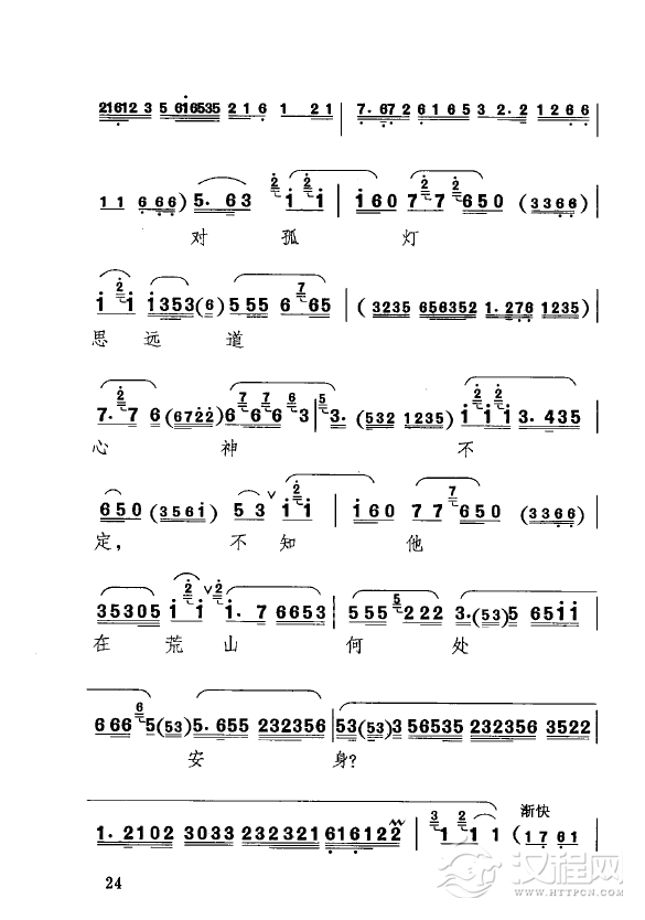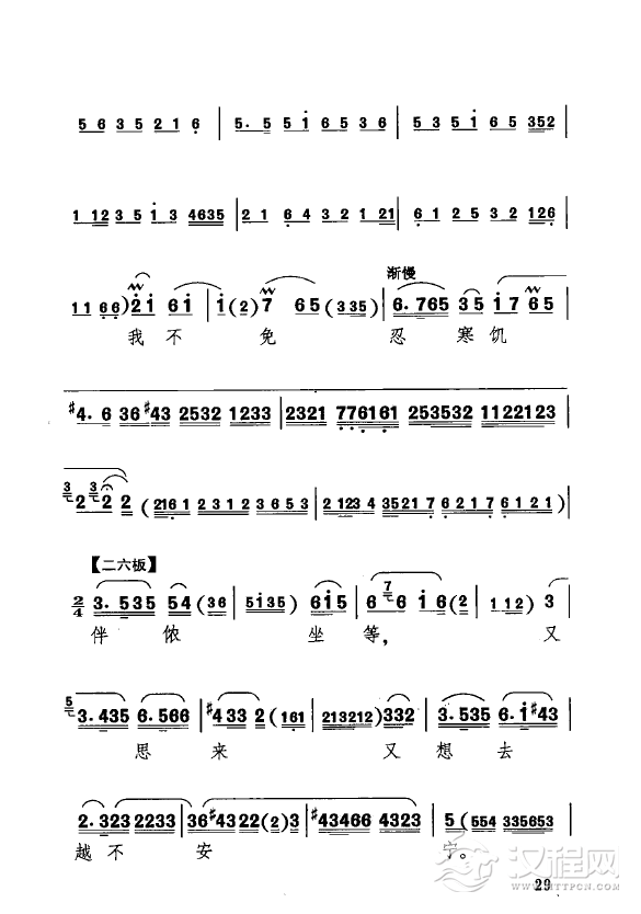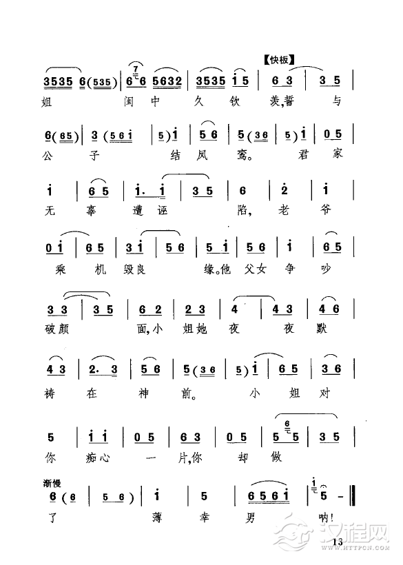 戏曲曲谱盼只盼心上的人儿早日有着落(黄梅戏《拾玉镯》选段)