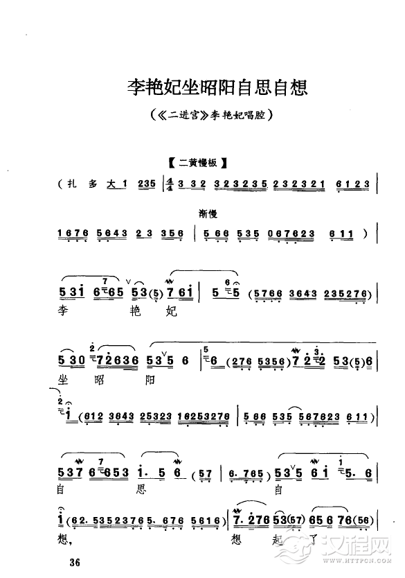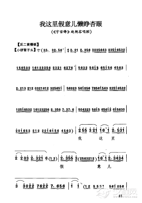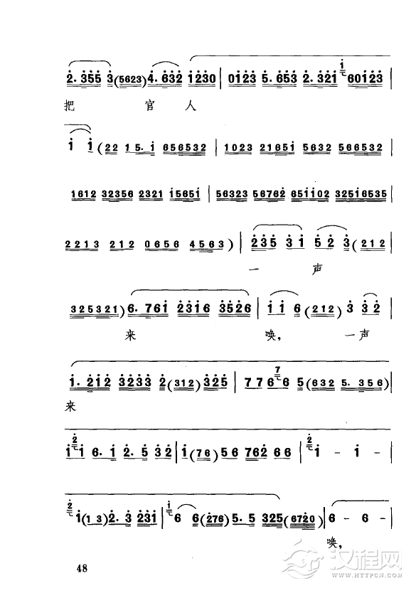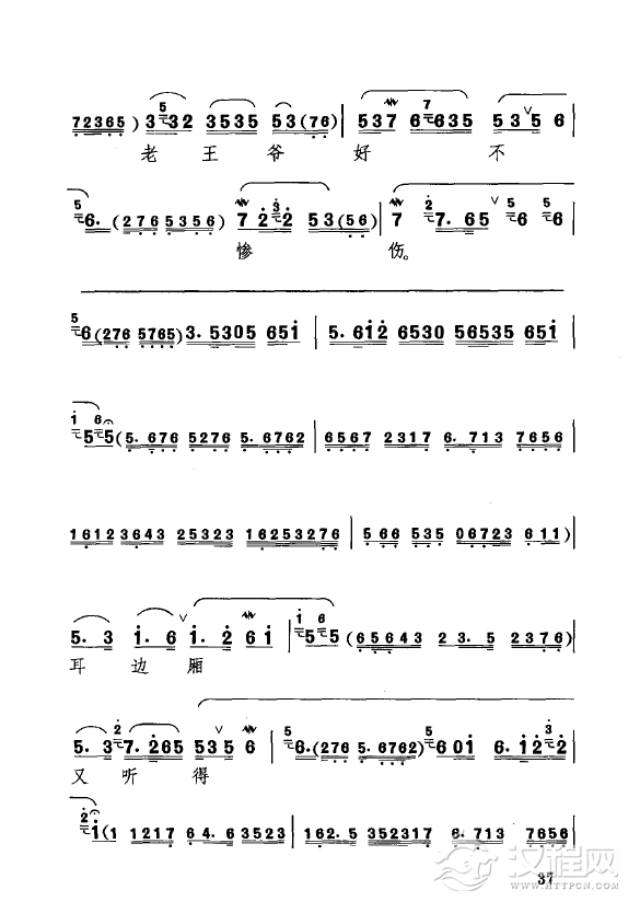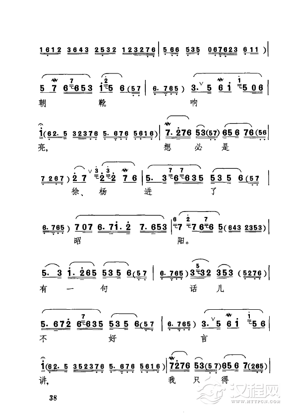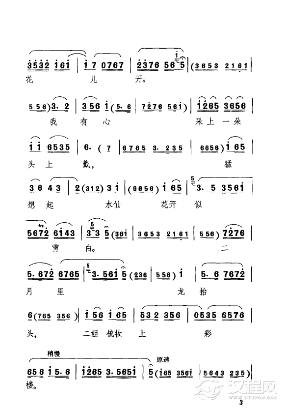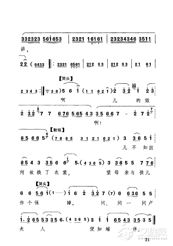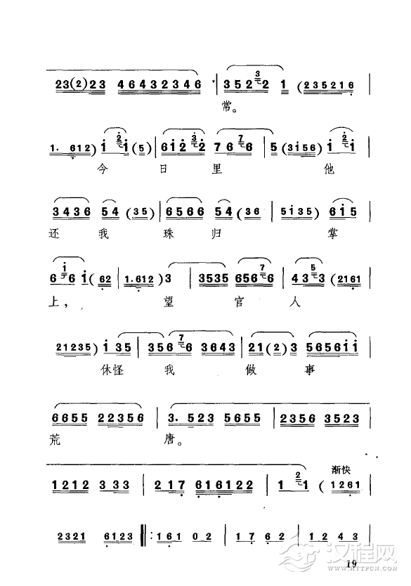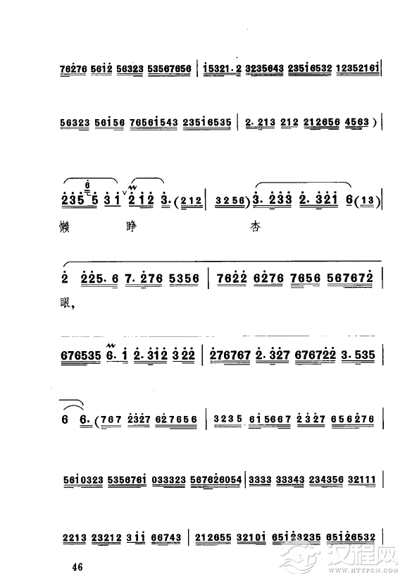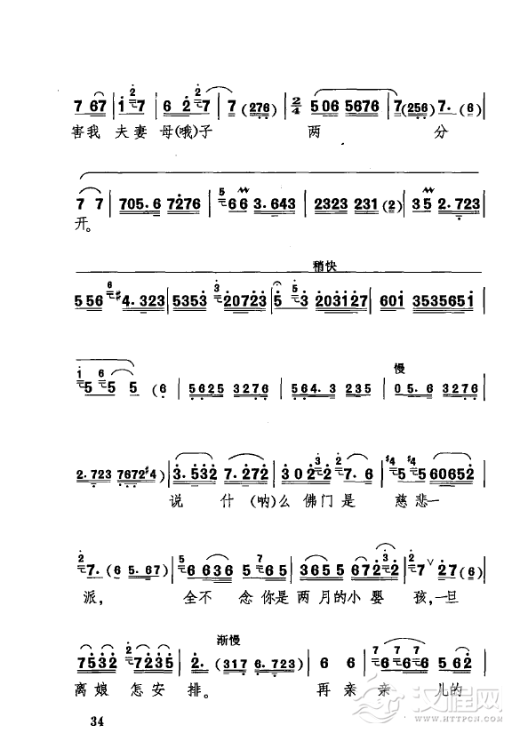 戏曲曲谱盼只盼心上的人儿早日有着落(黄梅戏《拾玉镯》选段)