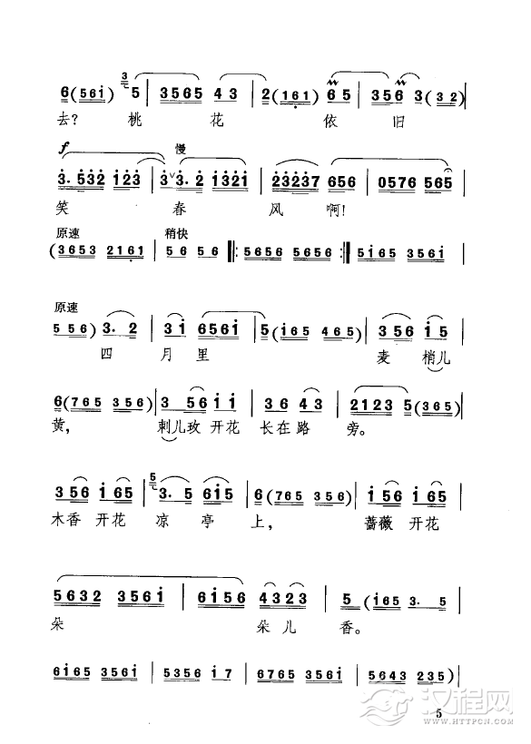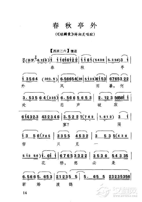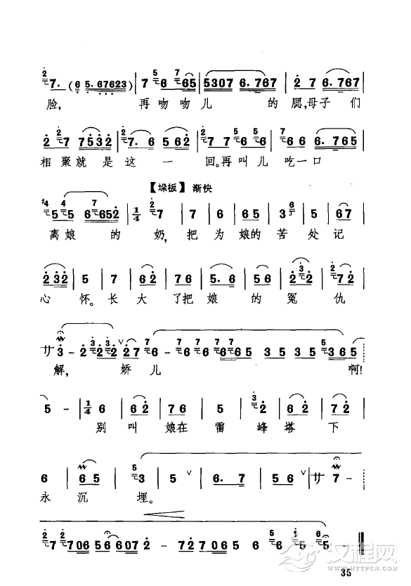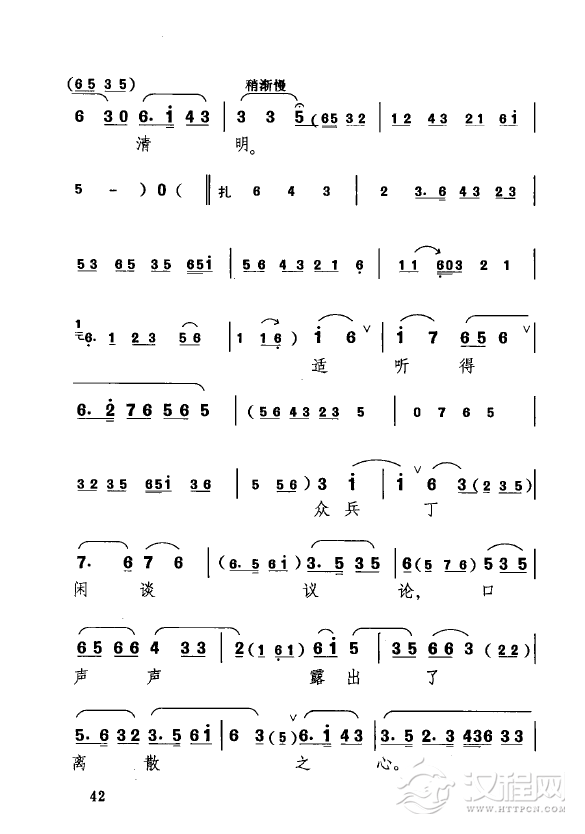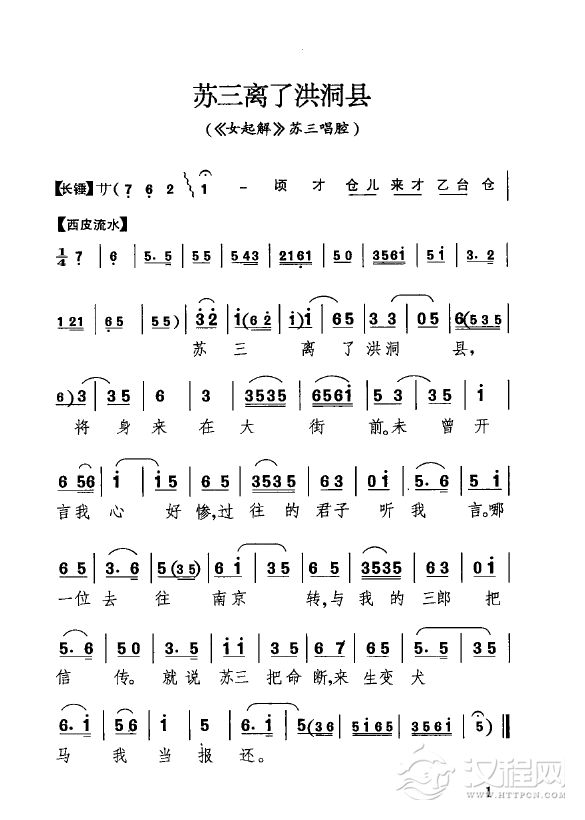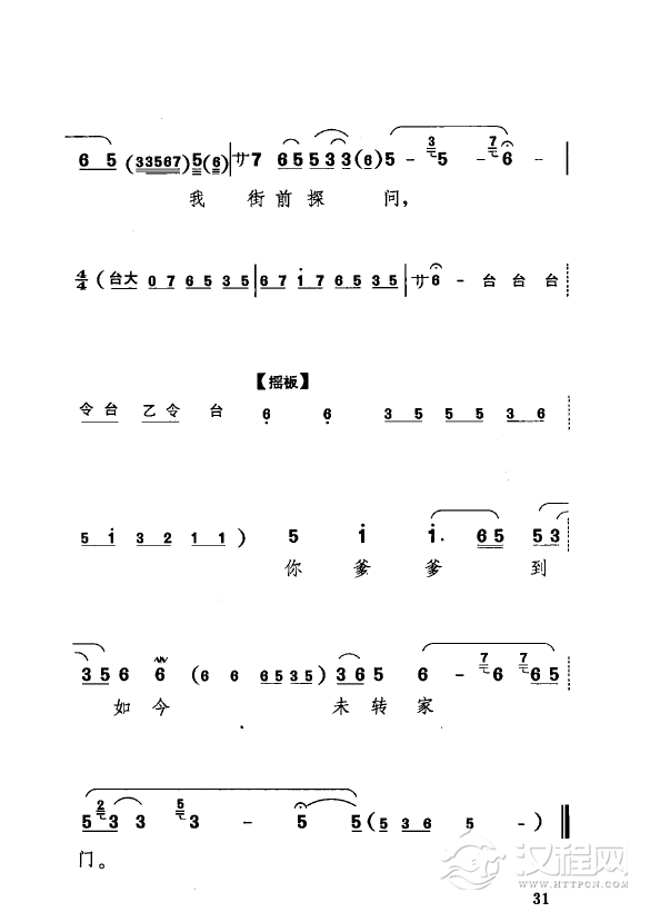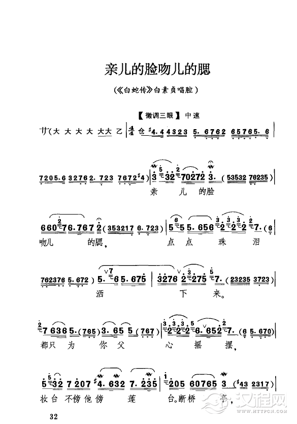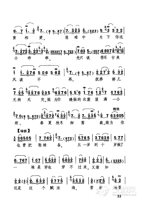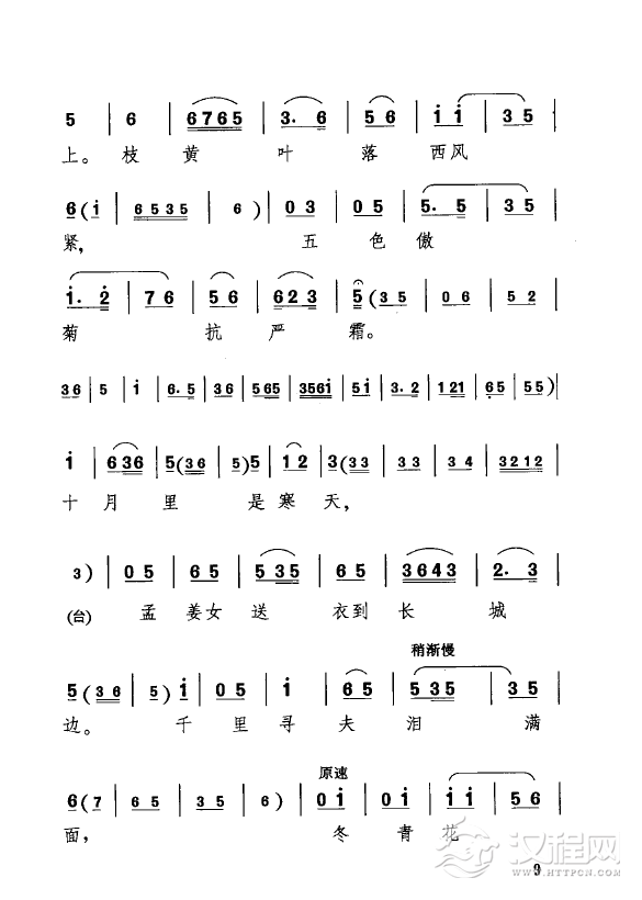 戏曲曲谱盼只盼心上的人儿早日有着落(黄梅戏《拾玉镯》选段)