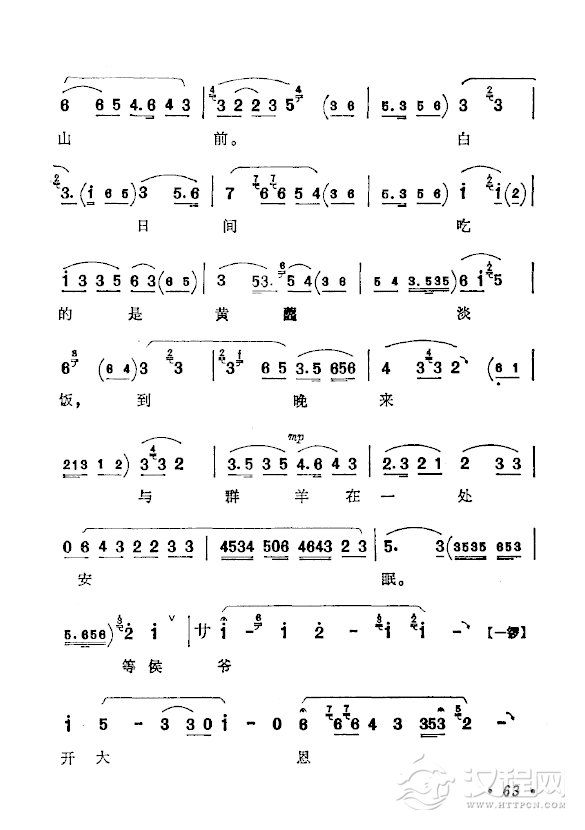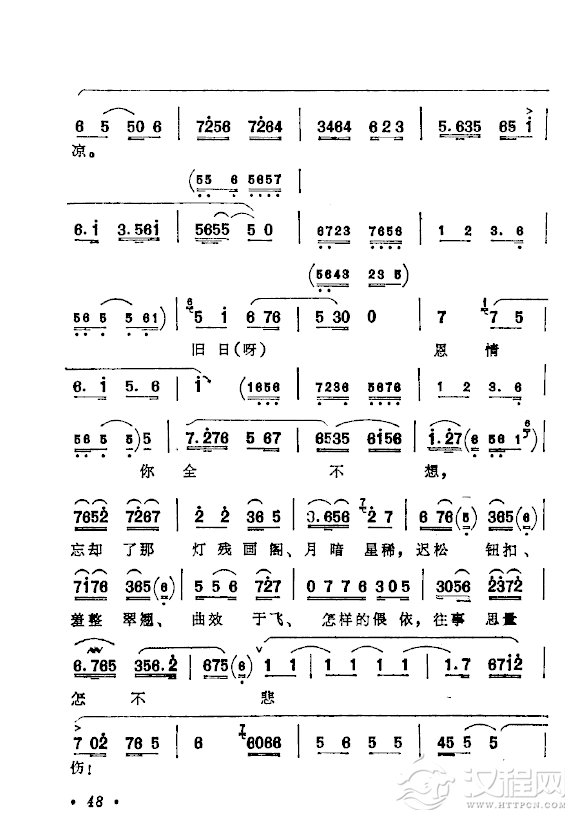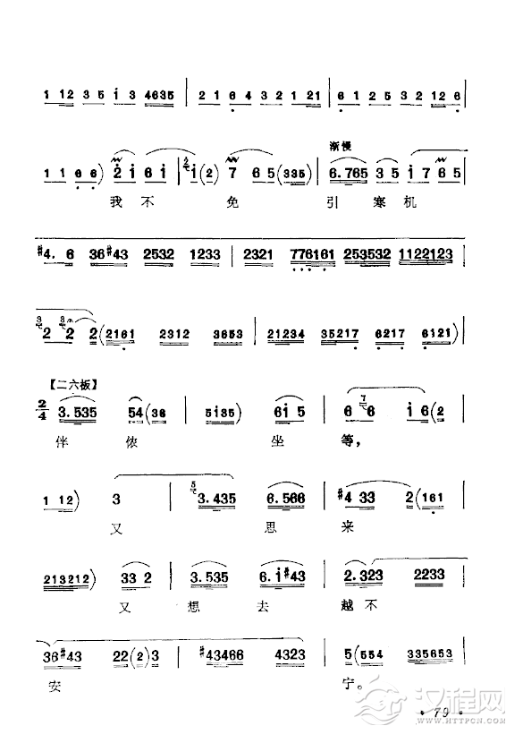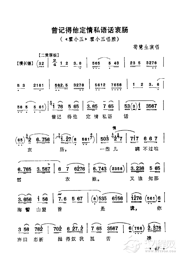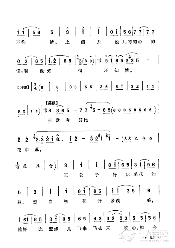 戏曲曲谱盼只盼心上的人儿早日有着落(黄梅戏《拾玉镯》选段)