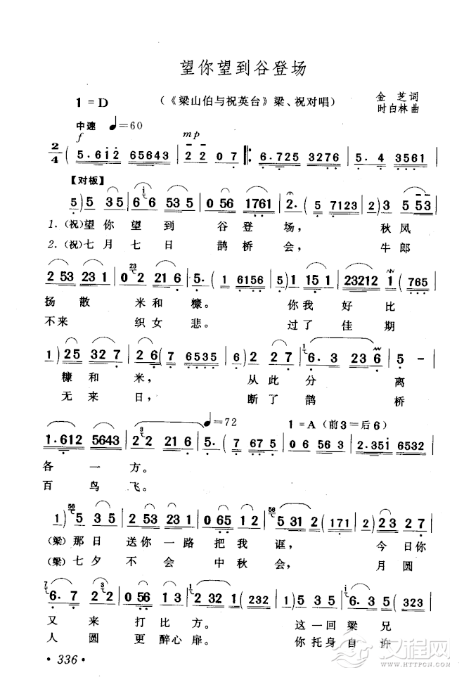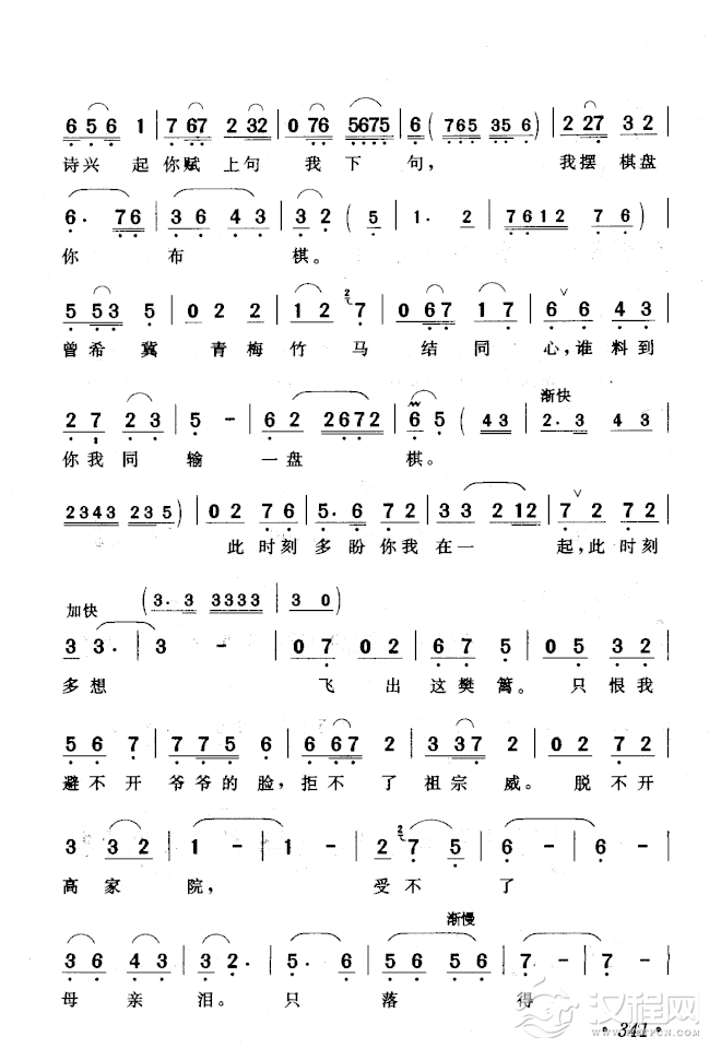戏曲曲谱记得草桥俩结拜(锡剧《梁祝-楼台会》选段)