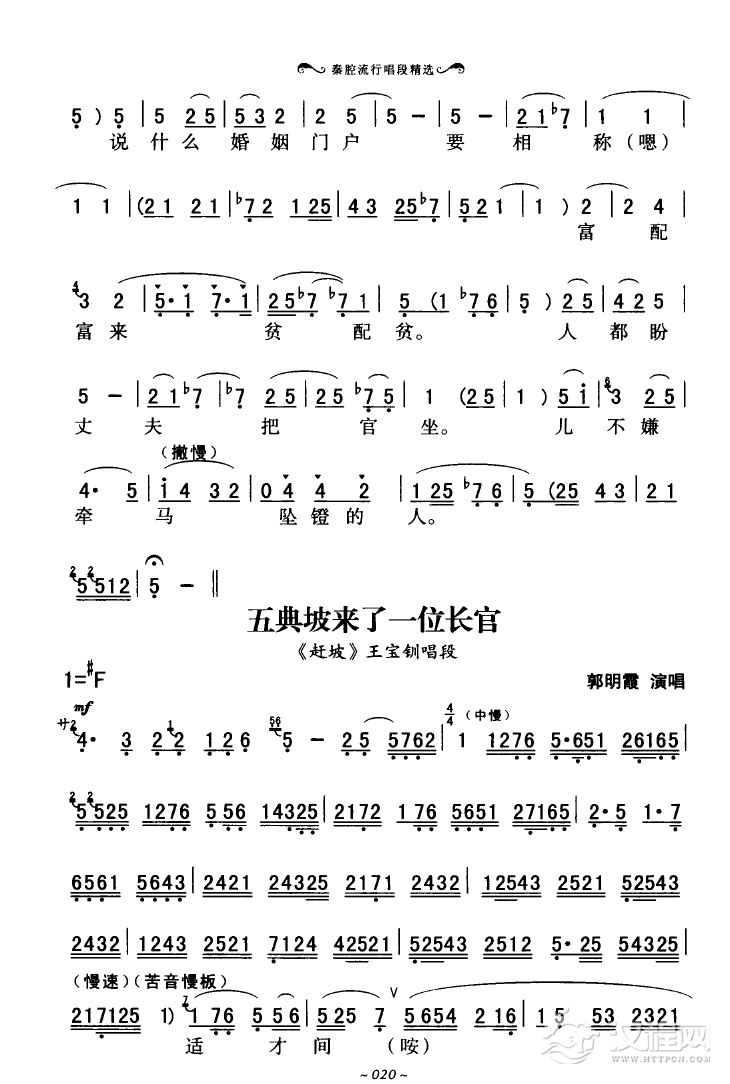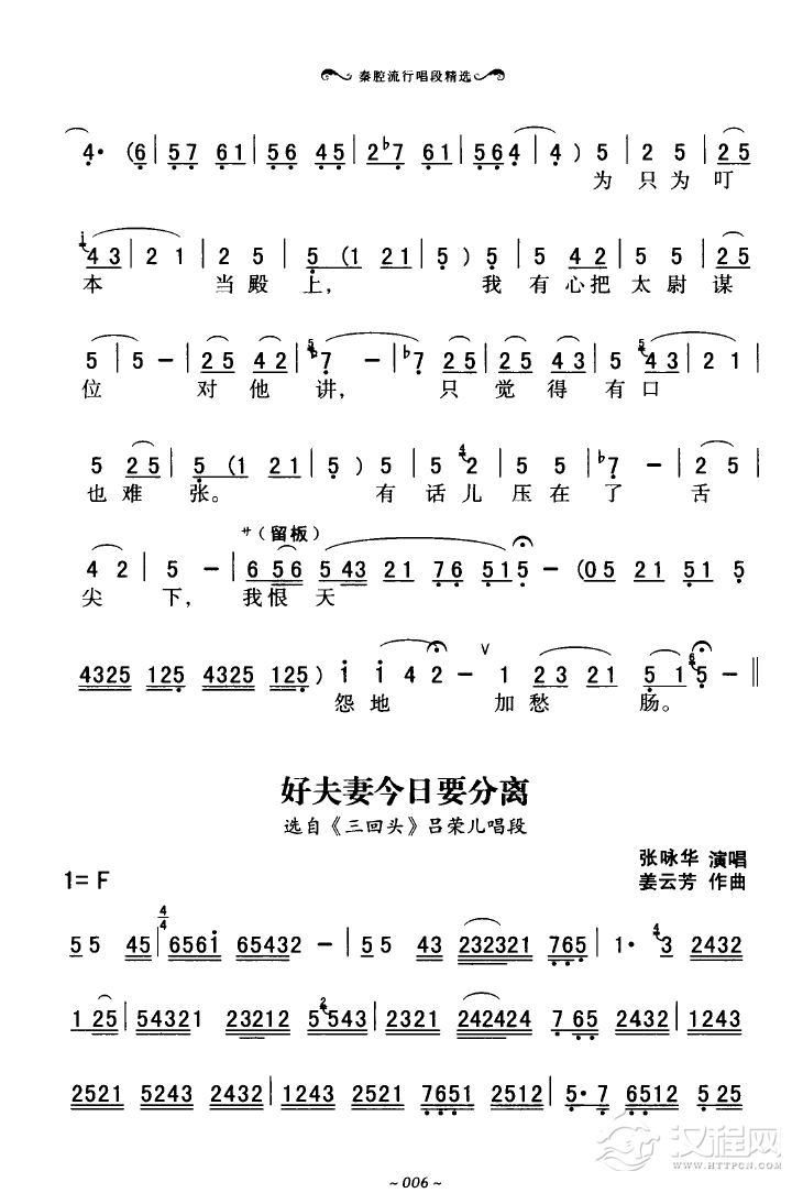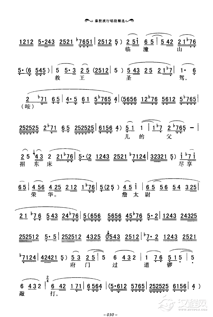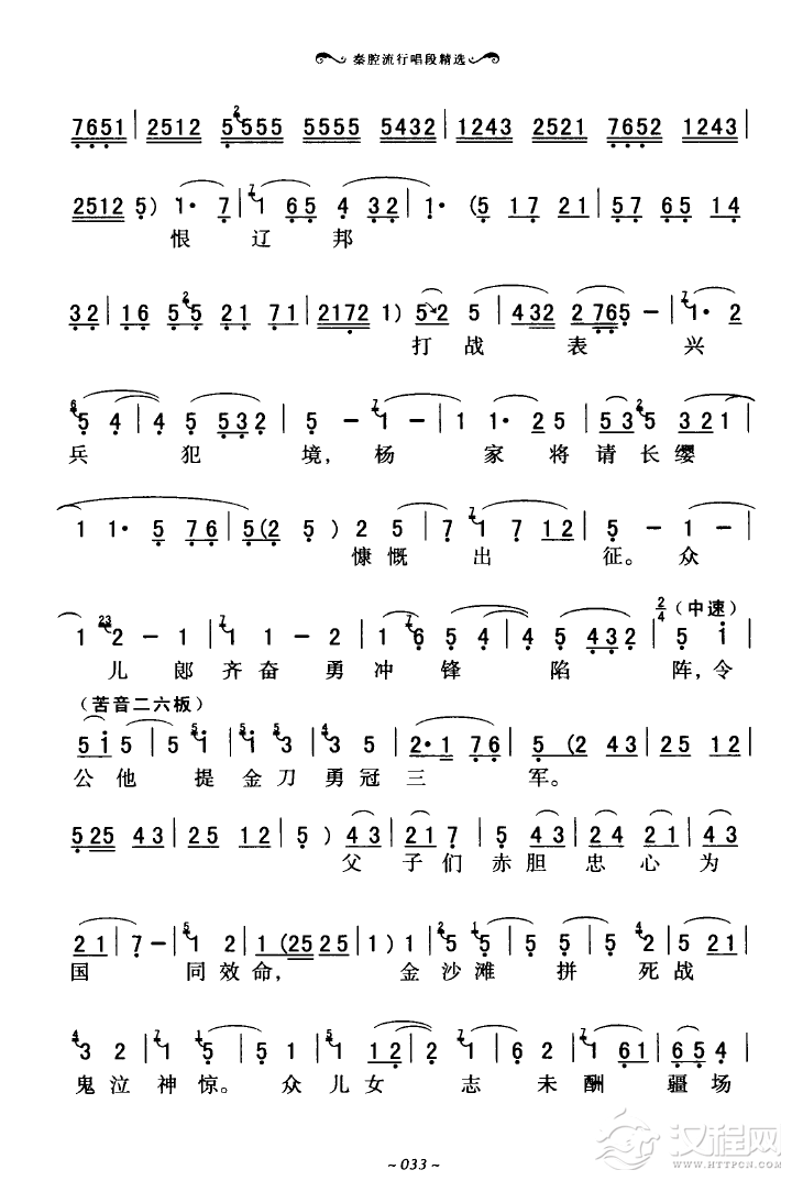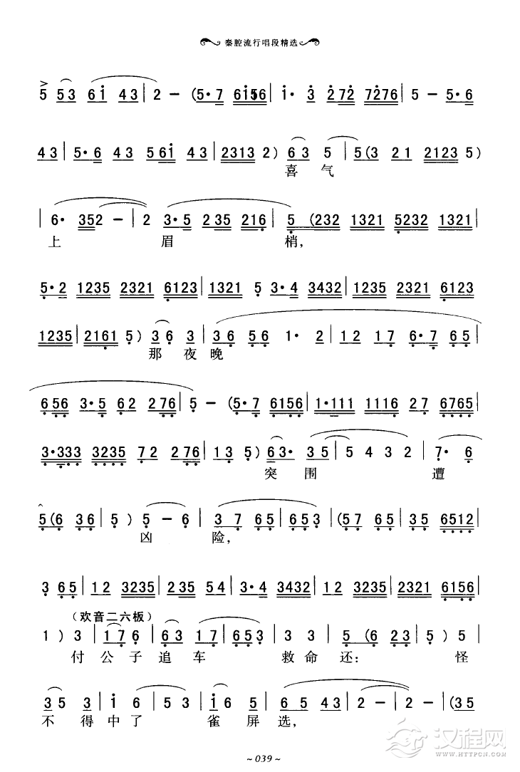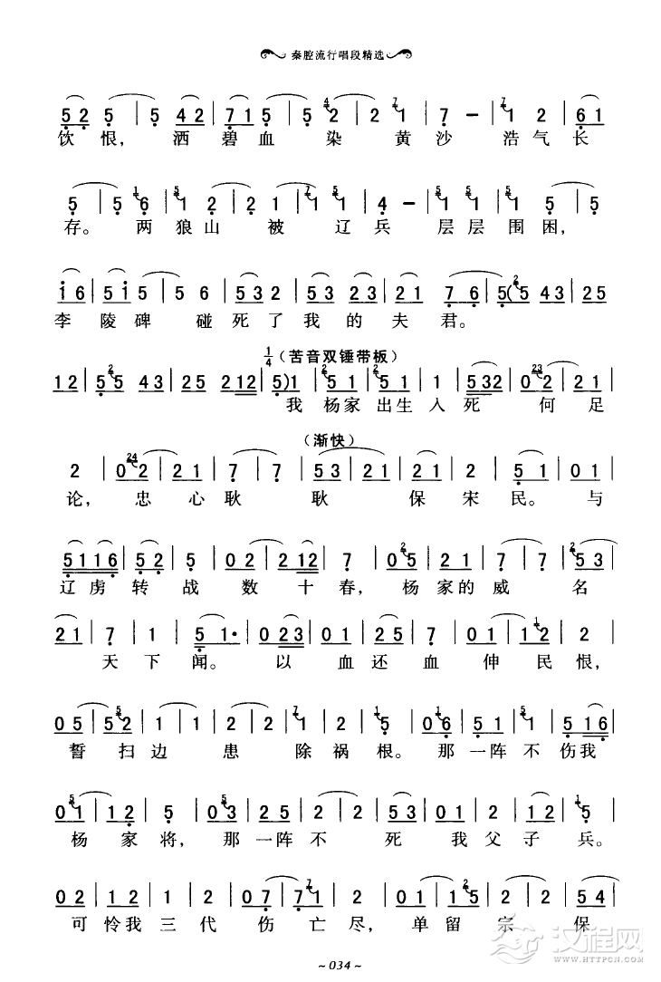 戏曲曲谱秦腔流行唱段精选(101-136)