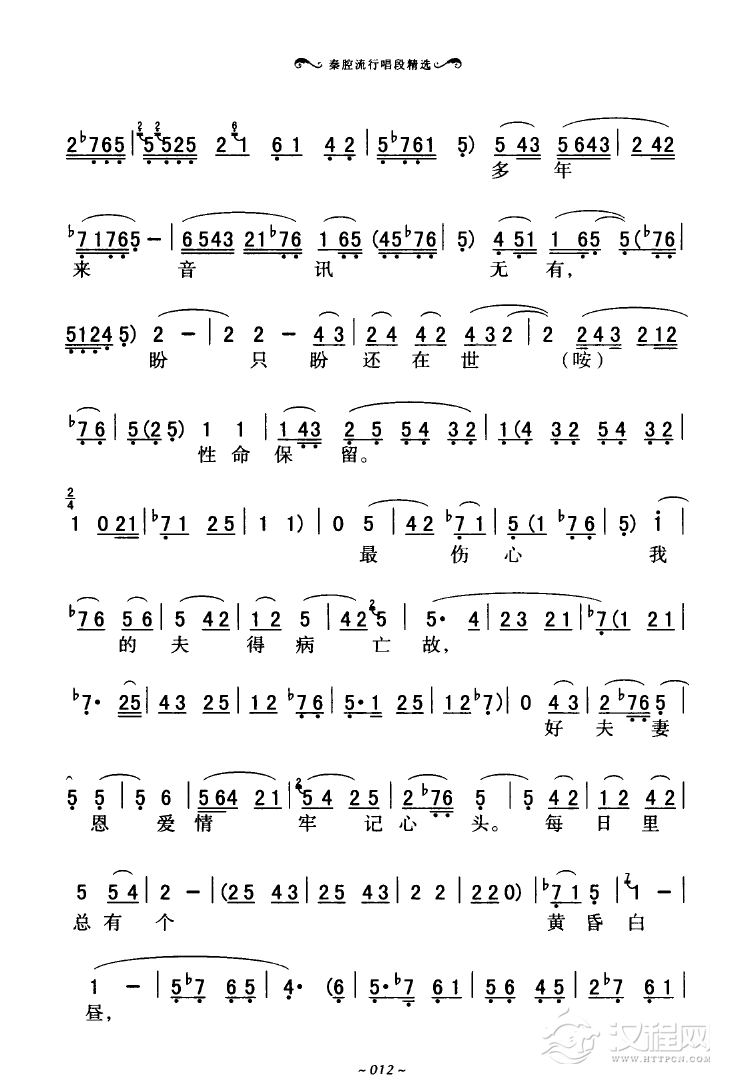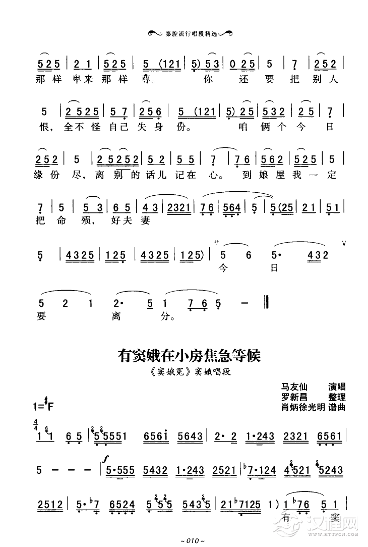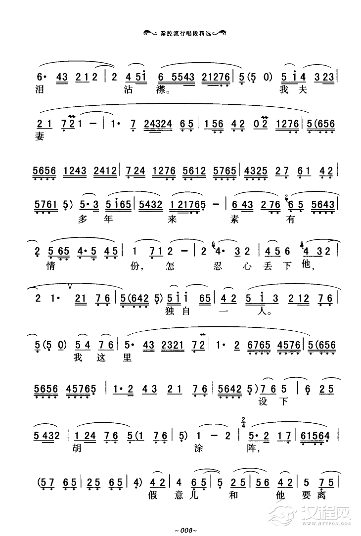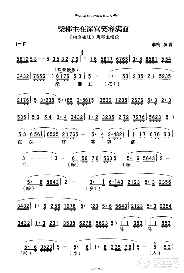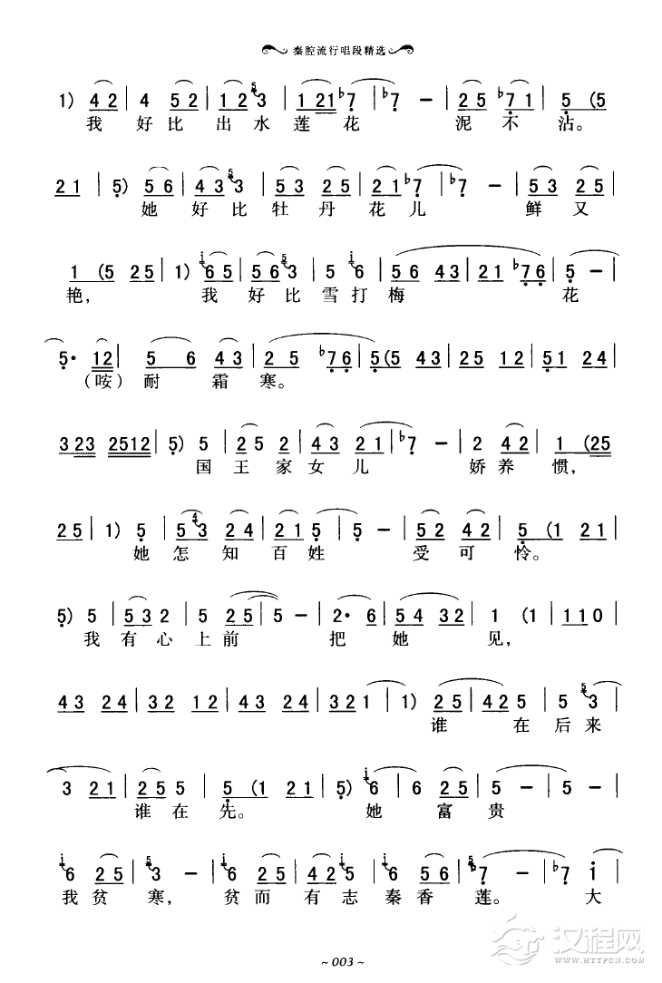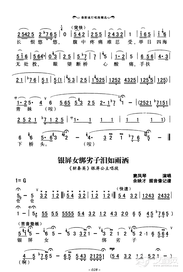 戏曲曲谱秦腔流行唱段精选(101-136)