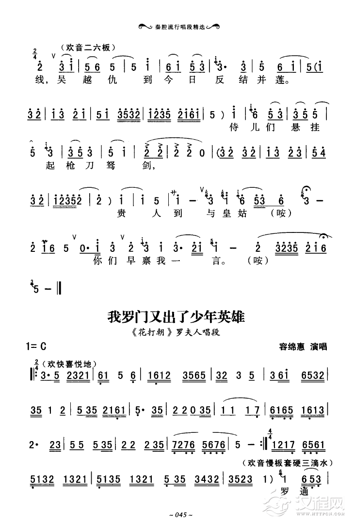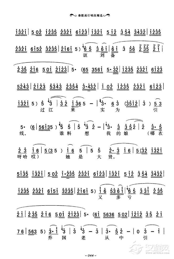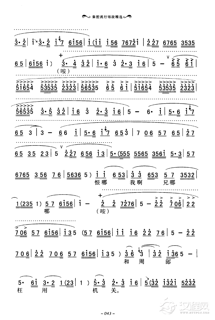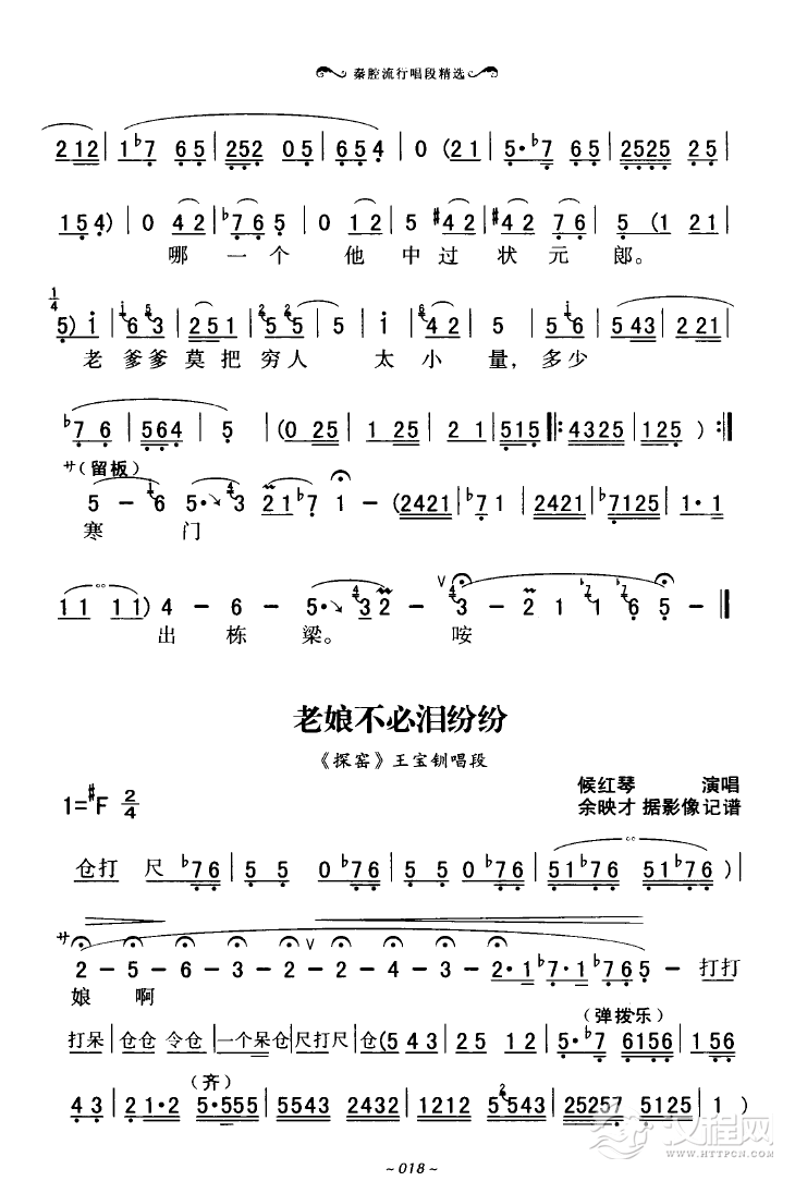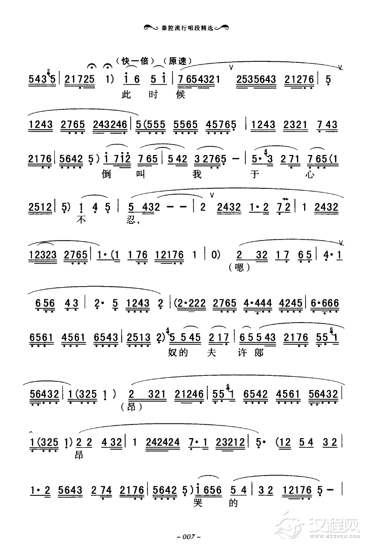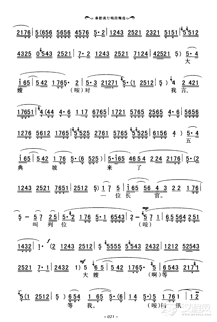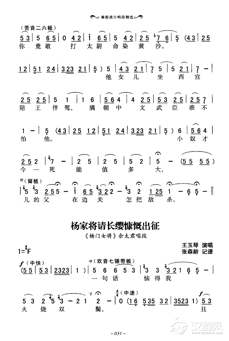 戏曲曲谱秦腔流行唱段精选(101-136)