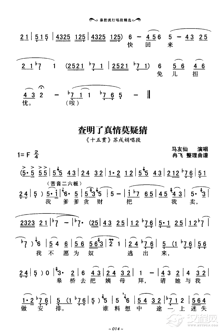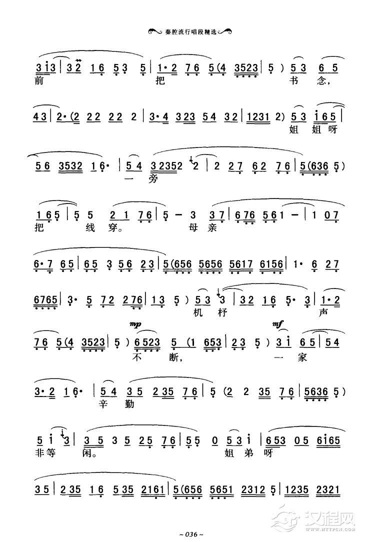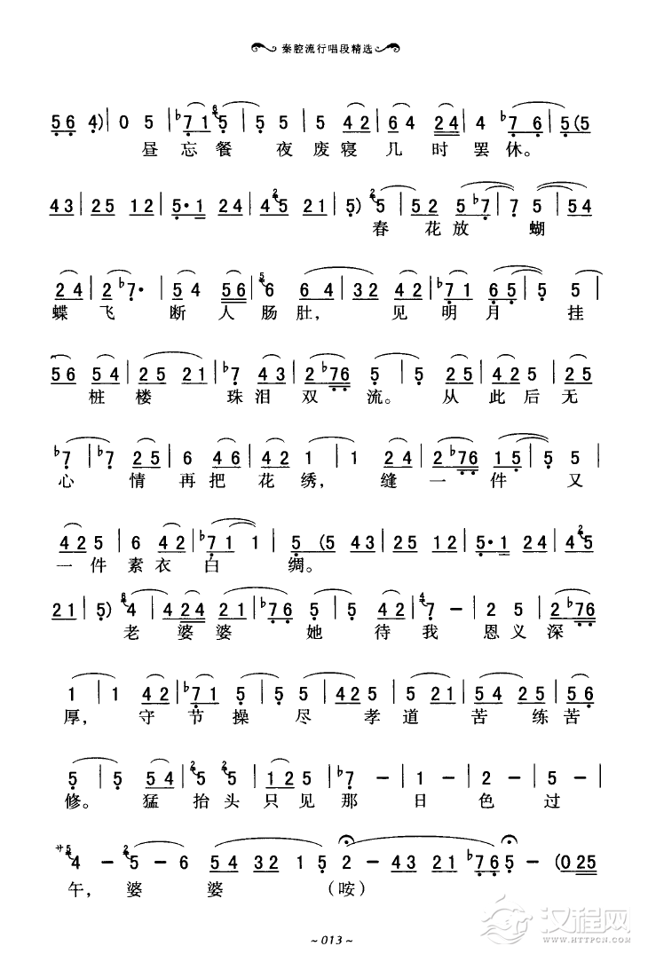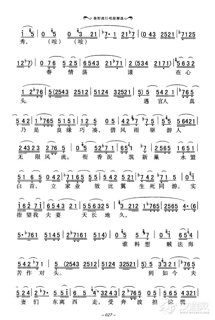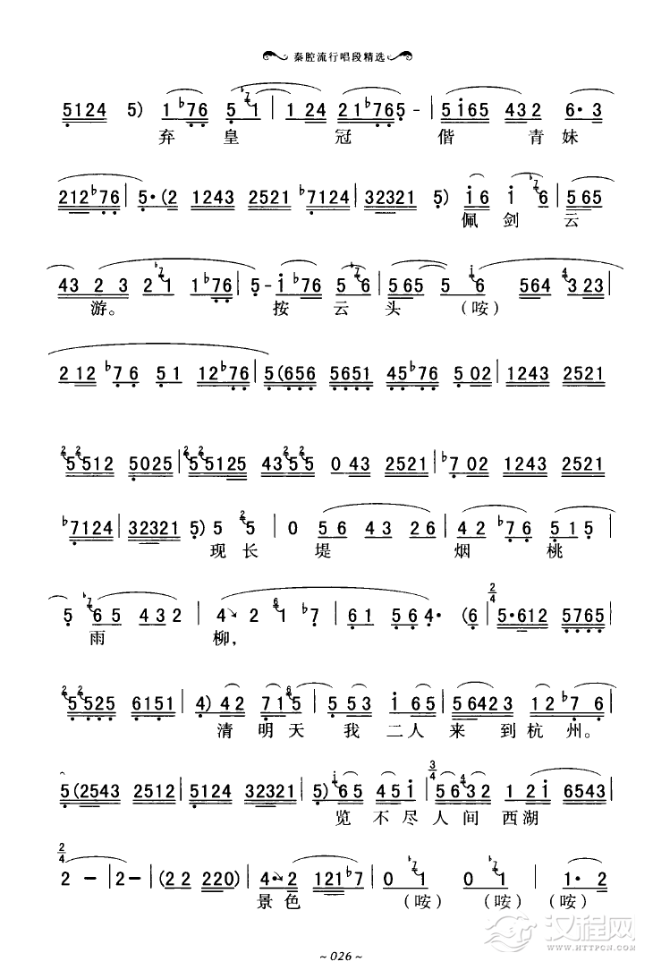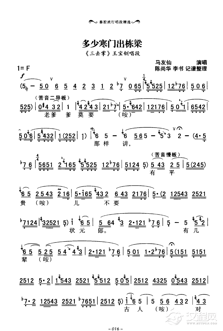 戏曲曲谱秦腔流行唱段精选(101-136)