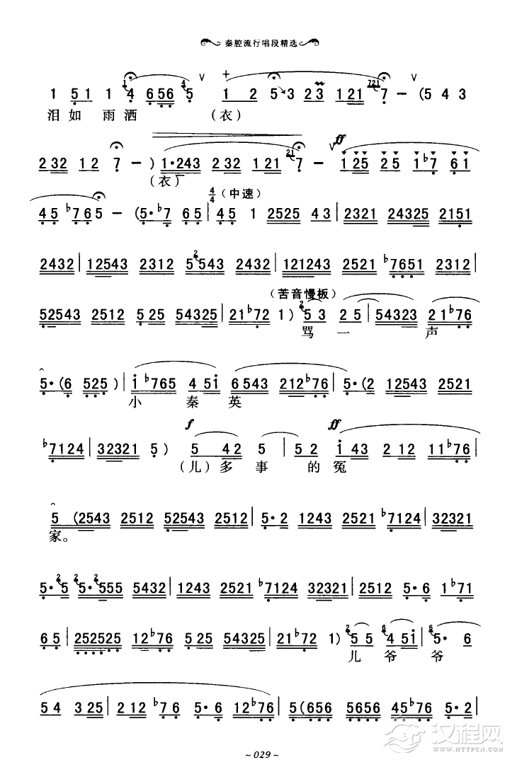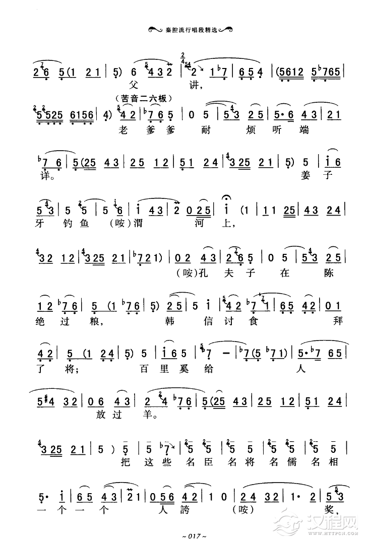 戏曲曲谱秦腔音乐唱板浅释(000-050)