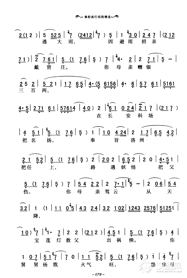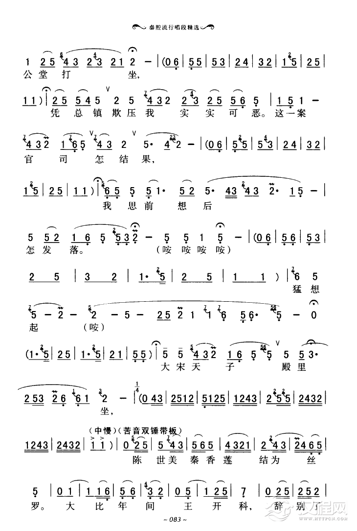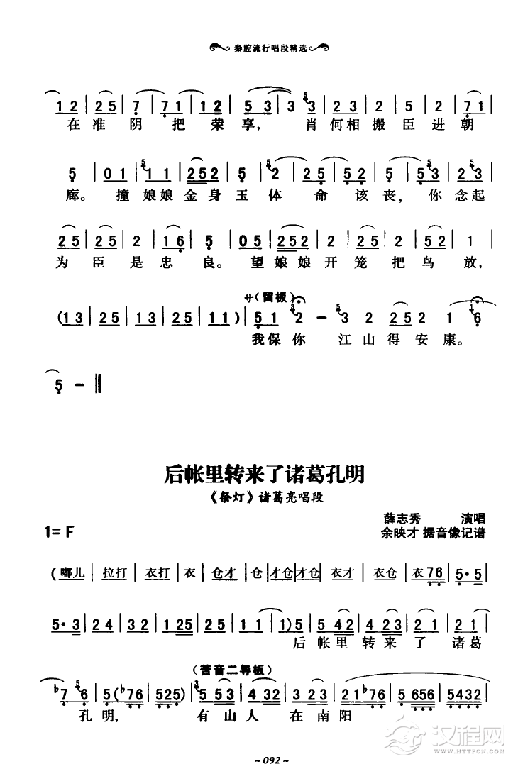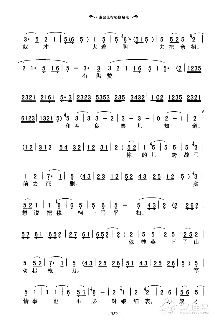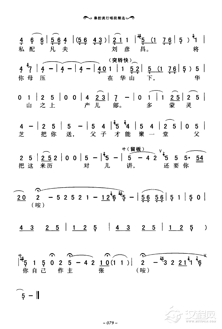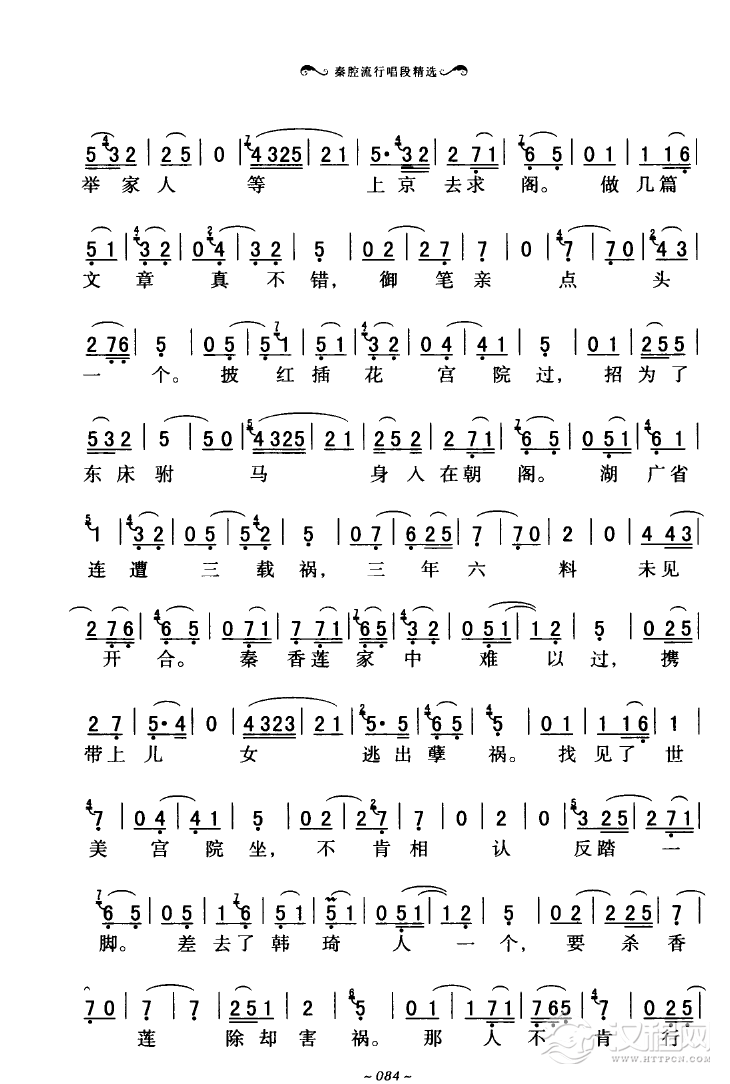 戏曲曲谱秦腔流行唱段精选(101-136)