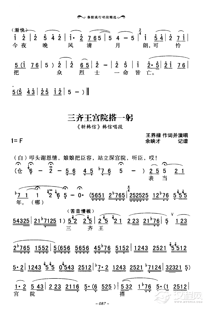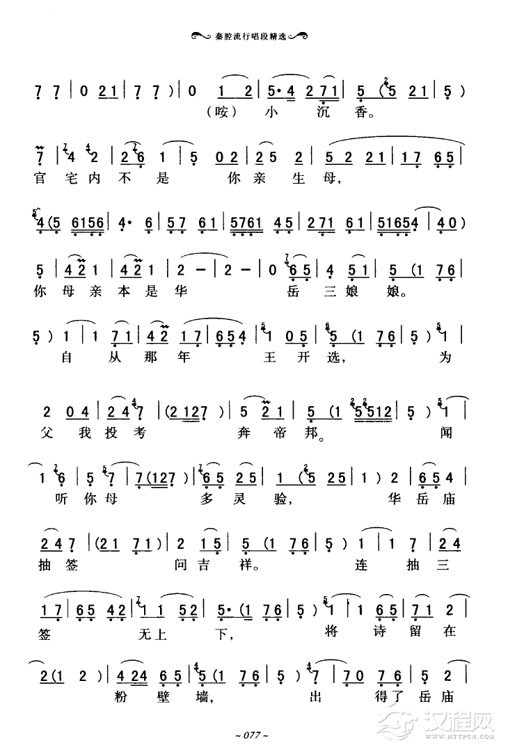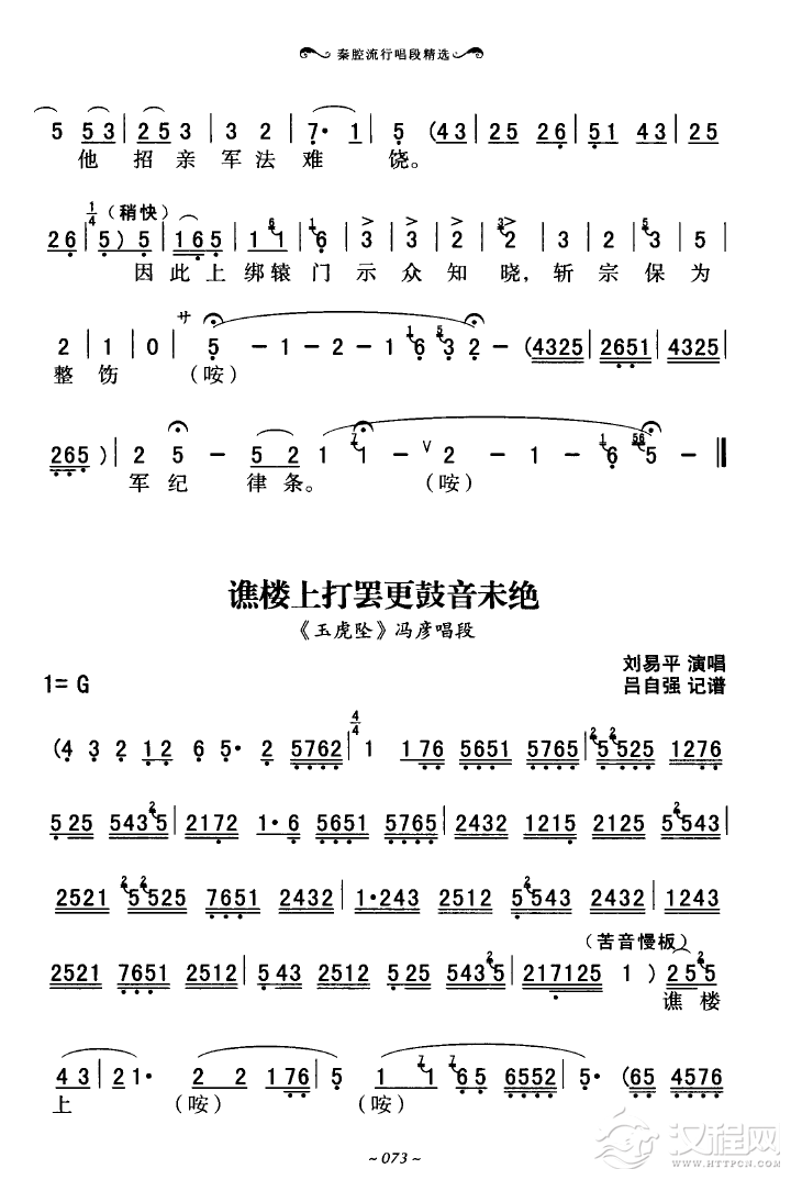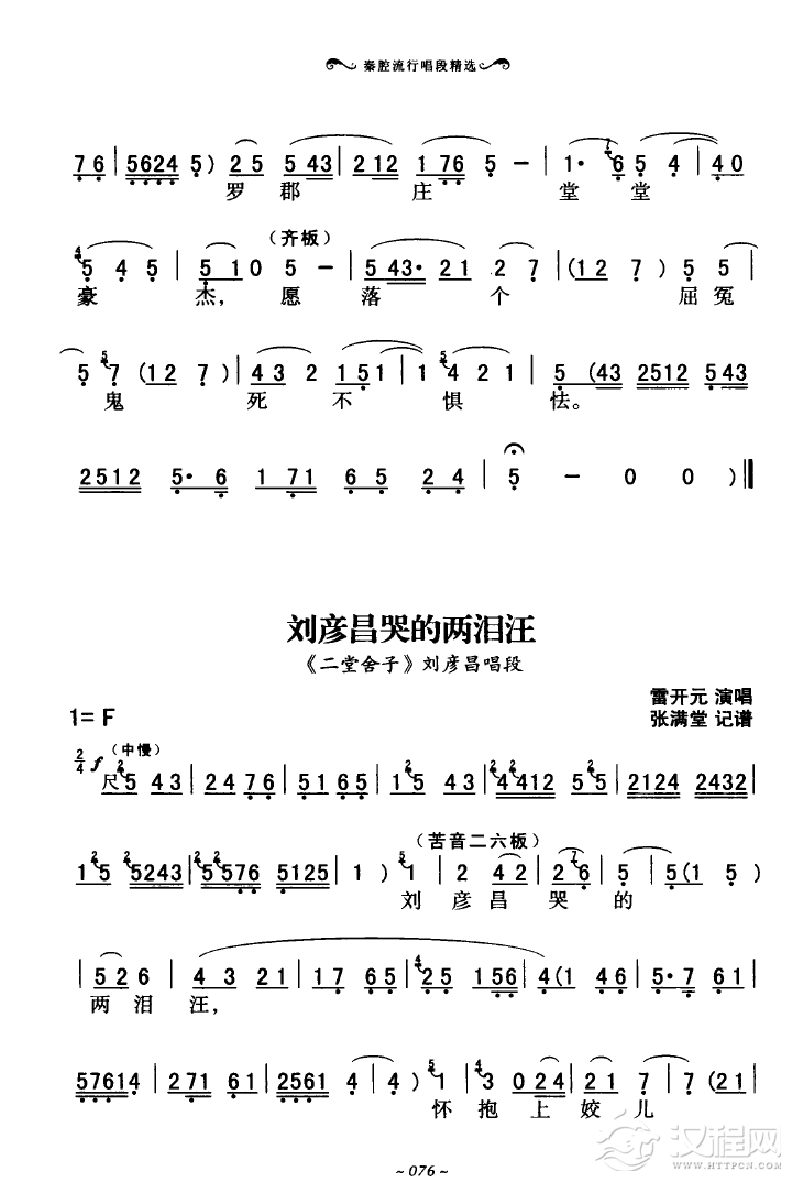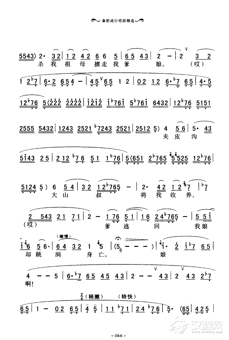 戏曲曲谱秦腔流行唱段精选(101-136)
