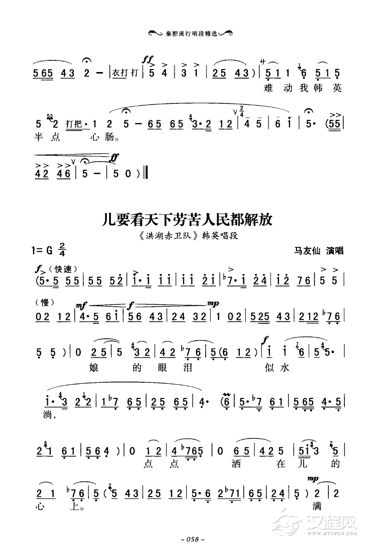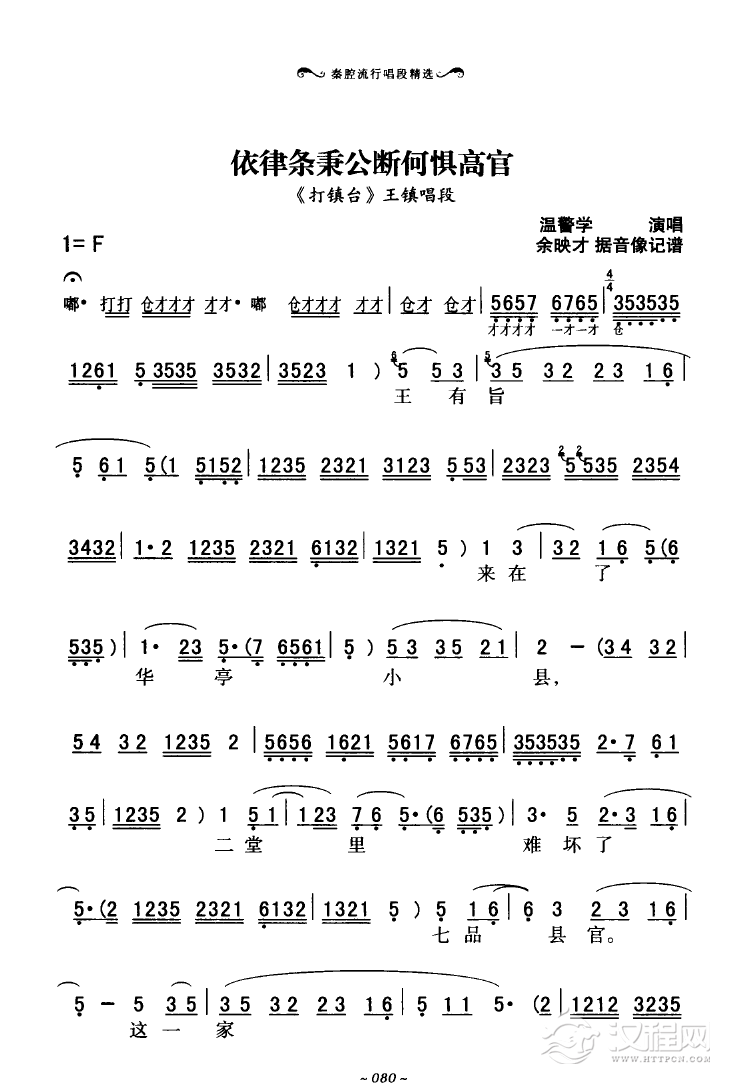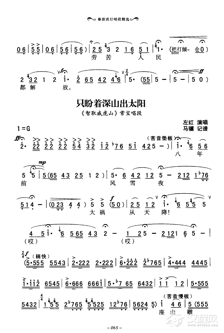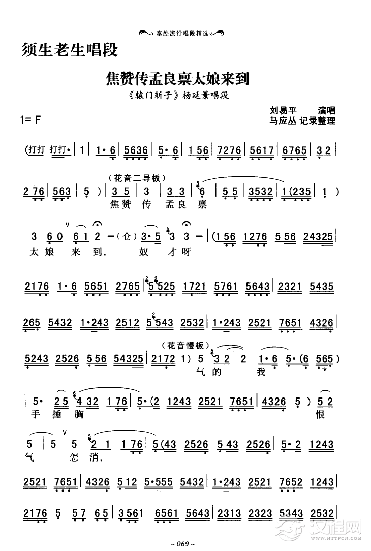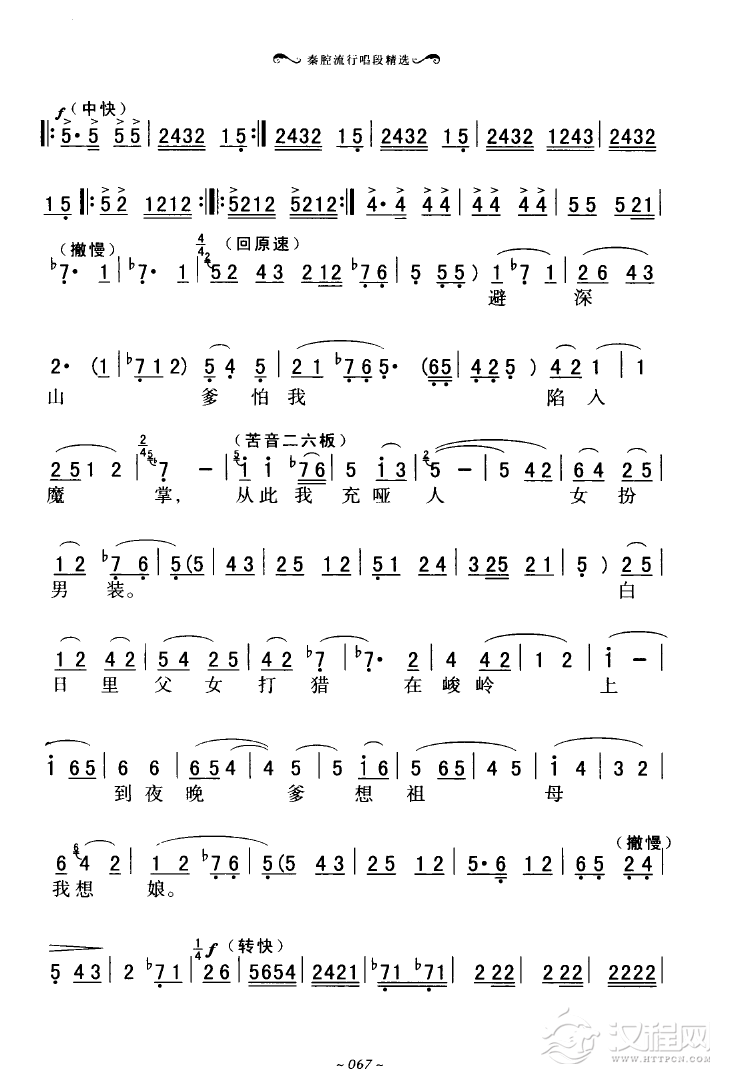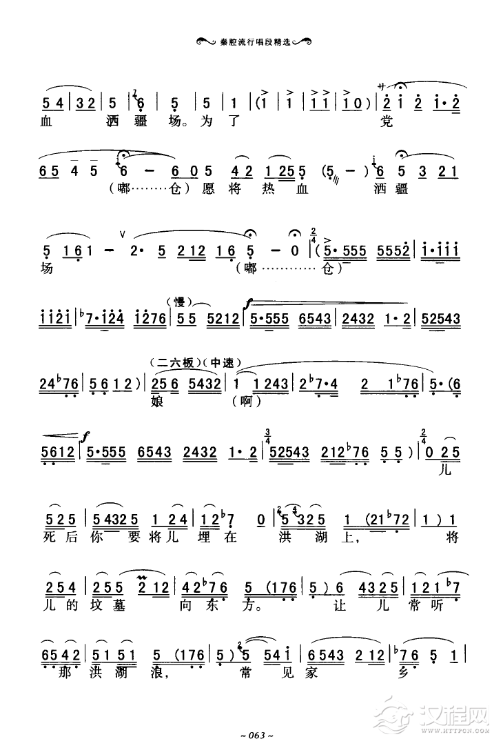 戏曲曲谱秦腔流行唱段精选(101-136)