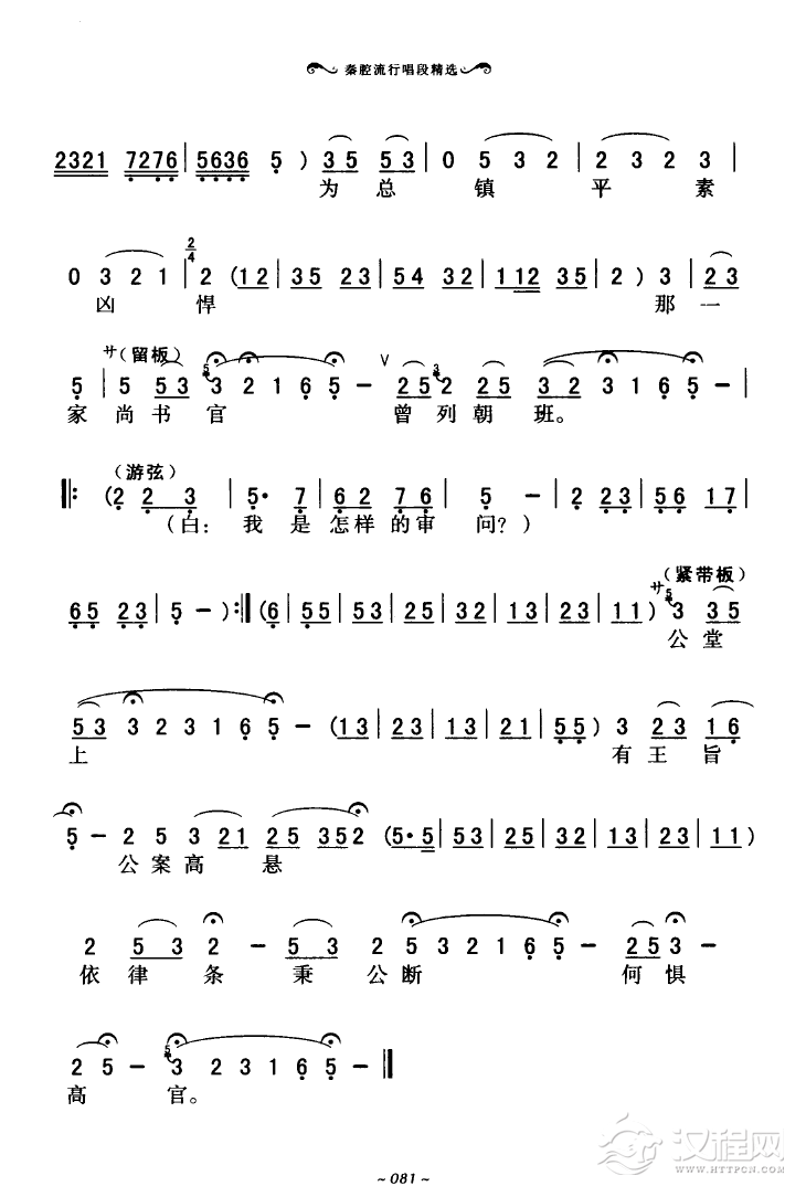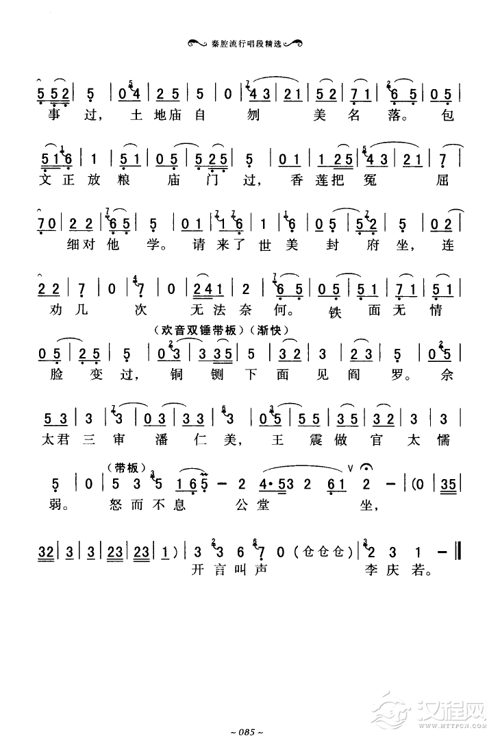 戏曲曲谱秦腔音乐唱板浅释(301-350)