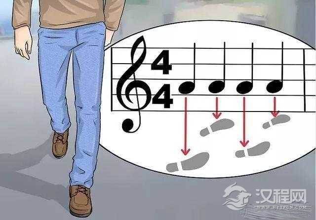 2.想象你正在走路,一步就是一拍,用音乐表达出来就成了一个四分音符。在大多数的西方音乐中,每小节有四拍。现在用你的步伐来感受节奏。
