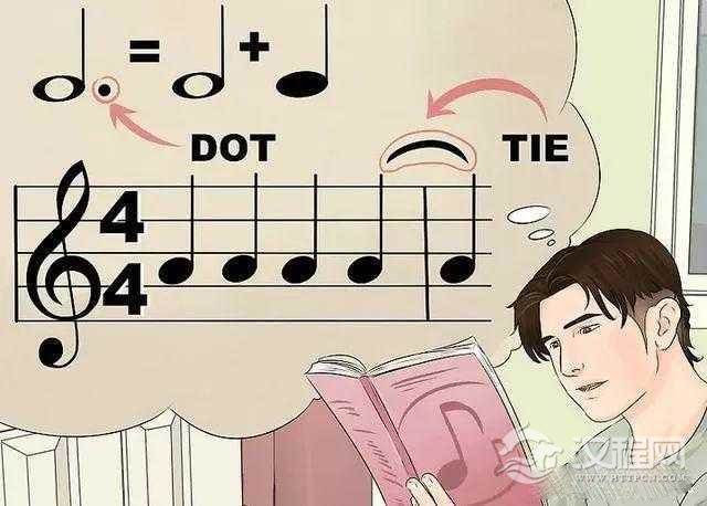 举个例子,在一个二分音符后面加一个附点,就相当于在后面加一个四分音符。而在一个四分音符后面加附点就相当于加了个八分音符。延音线也有延长作用。它是用弧线将两个音符的符头连接起来。附点的延长时间完全取决于它所附的音符,但延音线是将两个或两个以上的音符合成一个音,长度等于这些音符的总和。有一种延长时值的情况你必须要用延音线,而不是附点。就是当音符延长的时值超过了一个小节的音长,你只能将超出的部分写成一个音符放到下一小节中去,并用延音线将它们连接起来。连接符头与符头的延音线与符干的朝向相反。