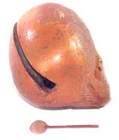 木鱼,打击乐器。原为佛教“梵吹”(宗教歌曲)的伴奏乐器。明王折《三才图会》:“木鱼,刻木为鱼形,空其中,敲之有声,……今释氏之赞梵吹皆用之”。清代以来流行于民间。