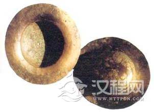 响铜制,钵形,铙面大而薄,边缘翘起,中心的帽突小而平。铙面直径33厘米~37厘米,帽径6厘米~7厘米,帽高4厘米~4.5厘米,铙顶中心钻孔系以绸布。两面为一副。