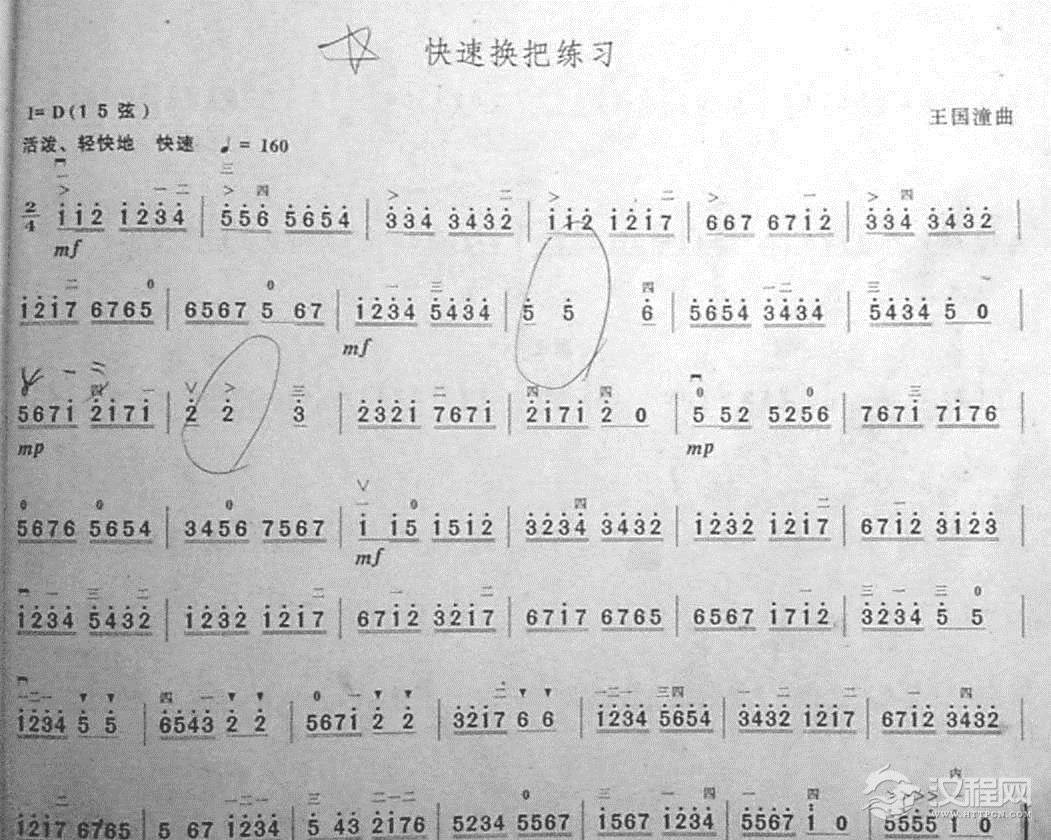 曲谱大全二胡曲谱:换把练习(中国二胡考级规定演奏曲/二级)