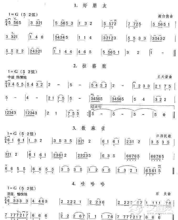 曲谱大全二胡曲谱:G大调一把位练习曲谱