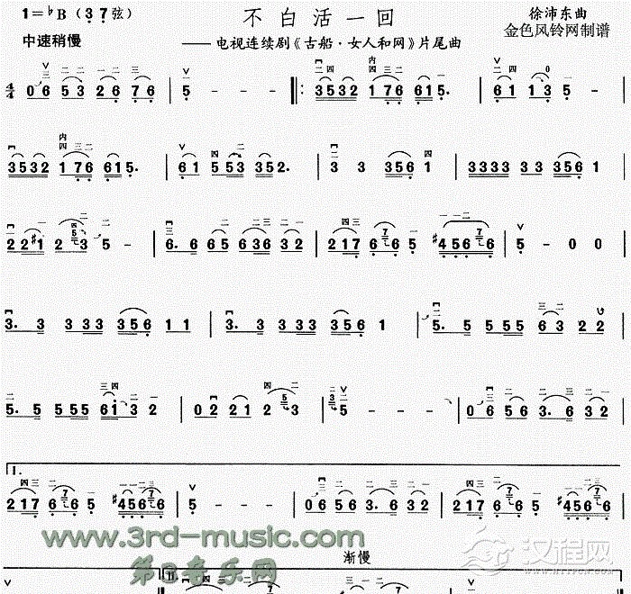 曲谱大全二胡曲谱:拖网的古船没快舟《古船·女人和网》主题歌