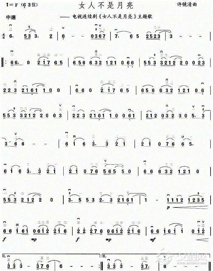曲谱大全二胡曲谱:未了情《夜深沉》主题歌